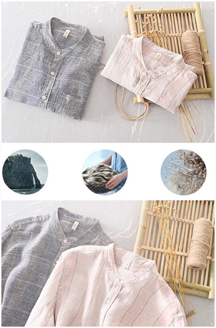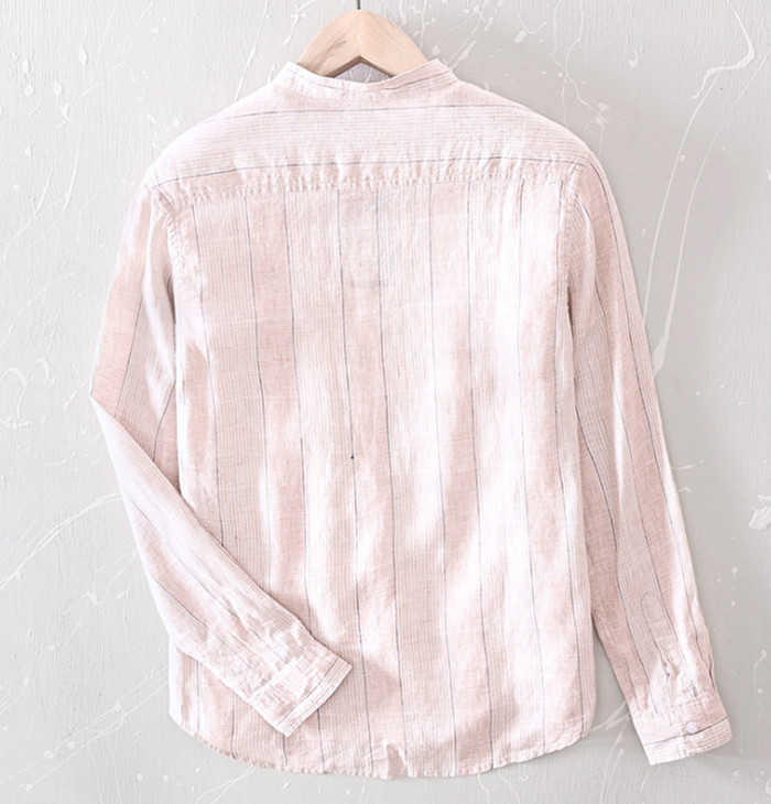 綿麻 ストライプ柄 長袖シャツ カジュ