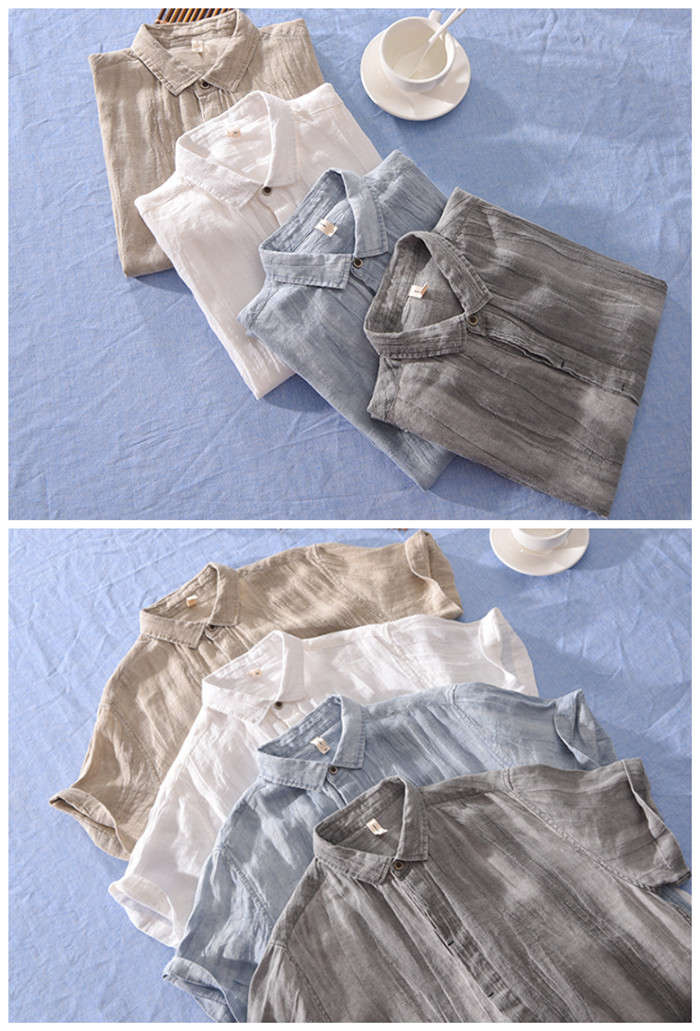 亜麻 半袖シャツ カジュアル 男性用