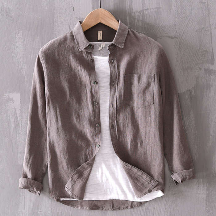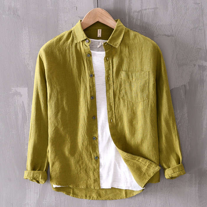 綿麻 無地 長袖シャツ カジュアル 男性用 トップス 春夏秋服 5色 緑色 灰色 白色メンズファッション トップス カジュアルシャツ
