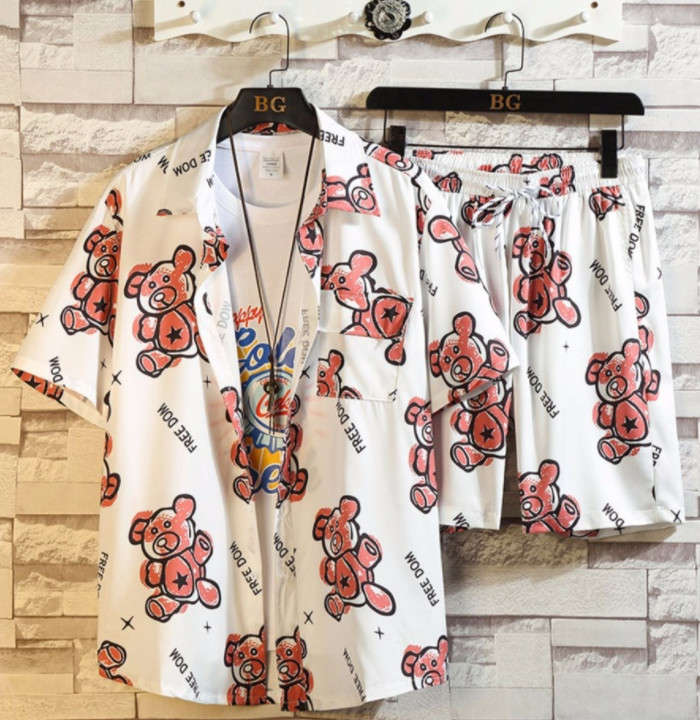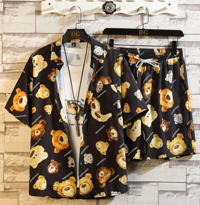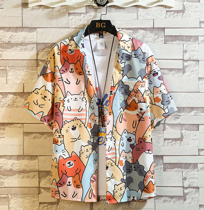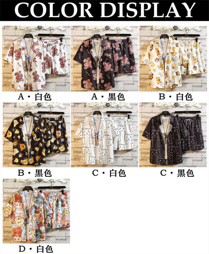セットアップ 猫柄 総柄 アロハシャツ