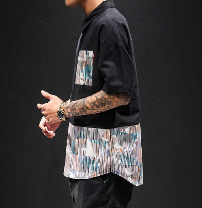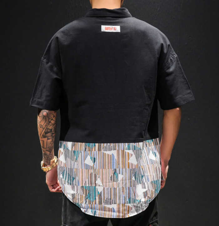 半袖 プルオーバーシャツ 切り替え柄