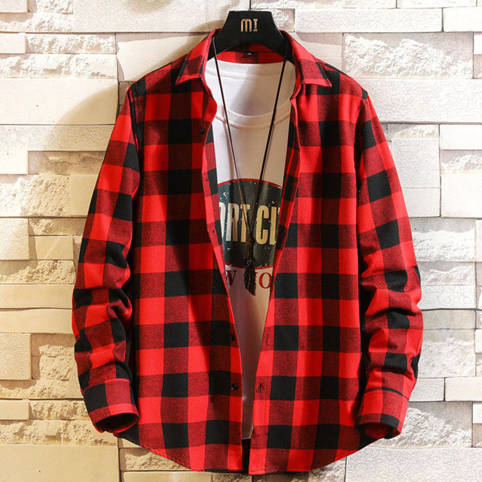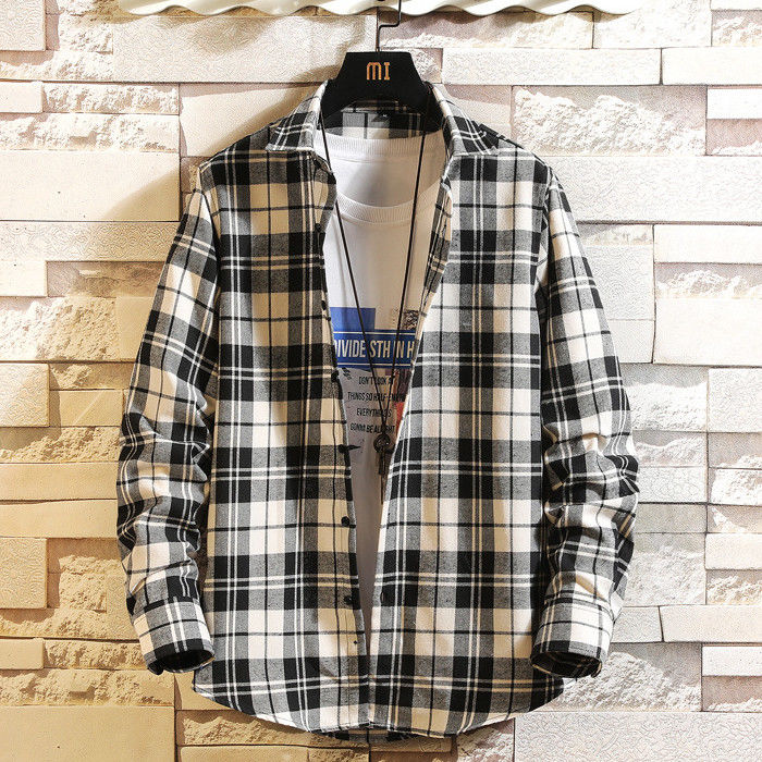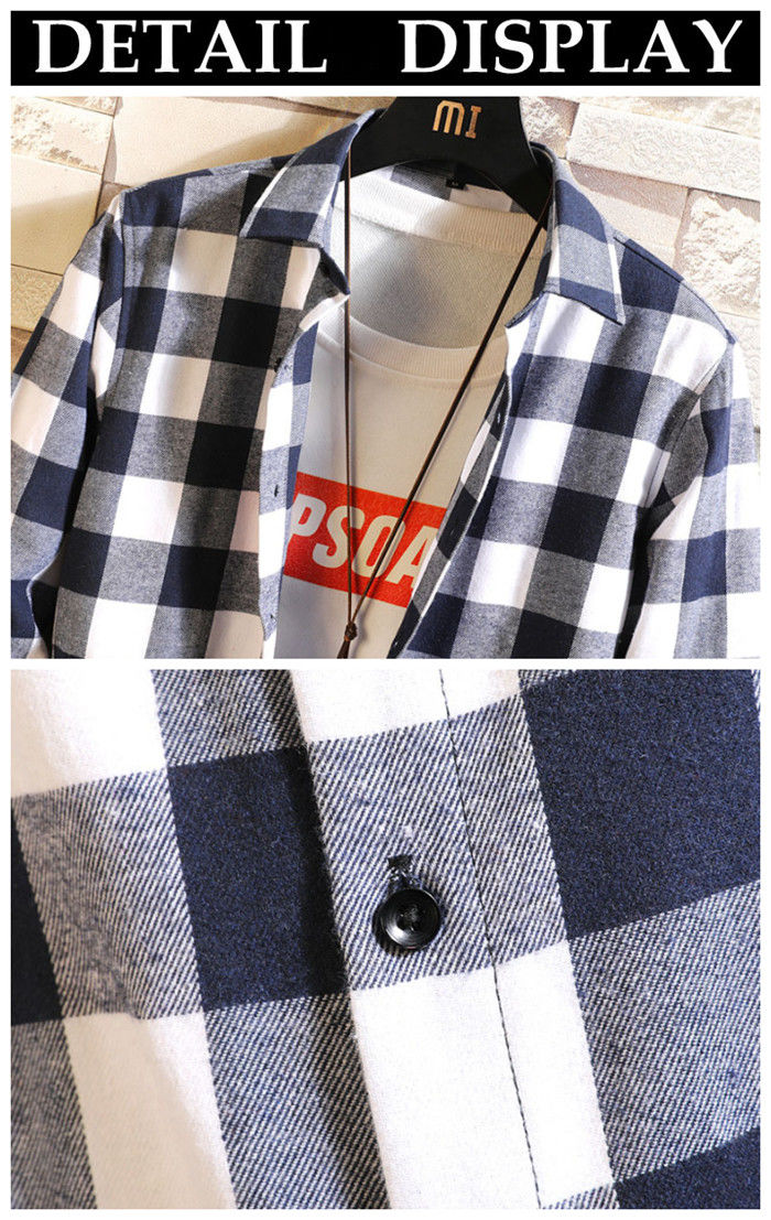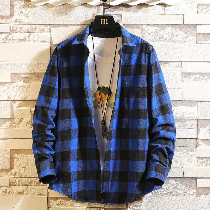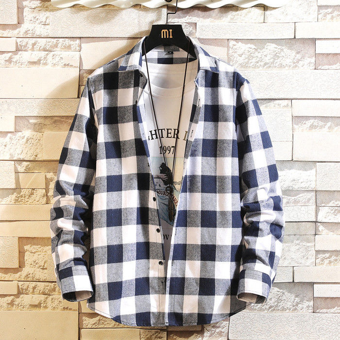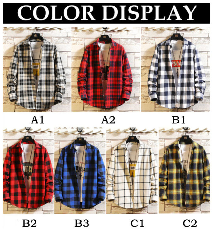 長袖 チェック柄 カジュアルシャツ 男