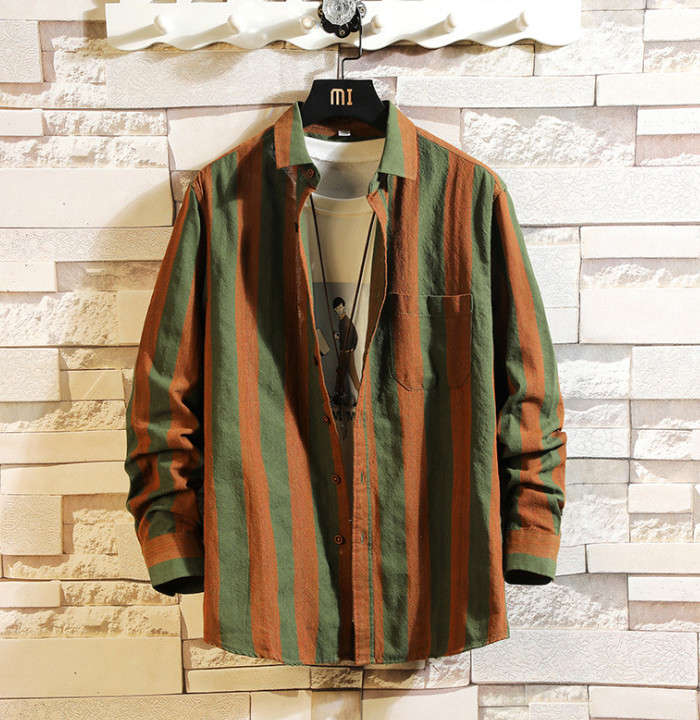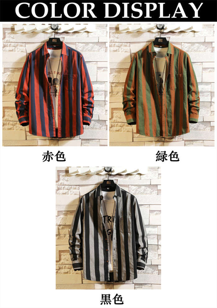長袖 ストライプ柄 カーディガン 男性用 トップス 3色 黒色 赤色 緑色メンズファッション トップス カジュアルシャツ