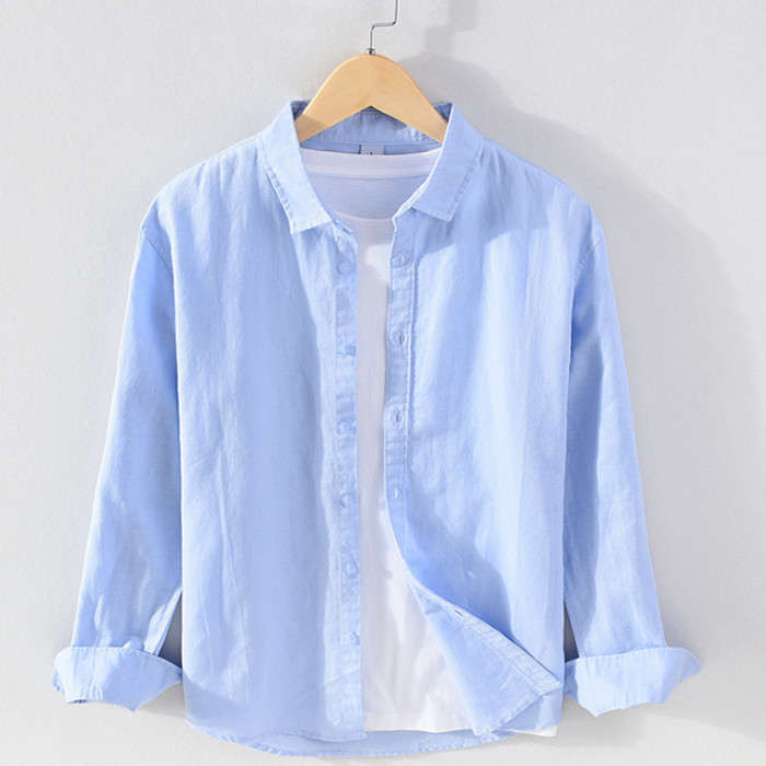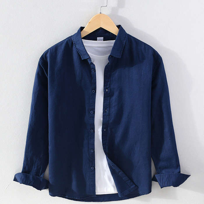 綿麻 ゆったり 長袖シャツ カジュアル