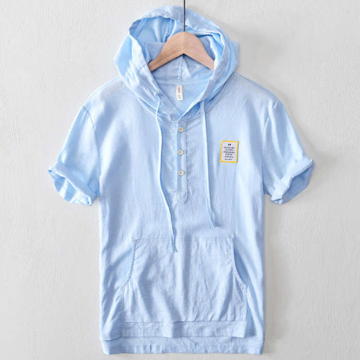 綿麻 半袖Tシャツ カジュアル パーカ