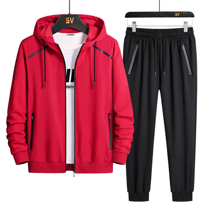 春秋新作 セットアップ上下 ジップアップパーカー スウェットパンツ スポーツウェア 男性用 4colors 黒色 赤色 藍色 灰色