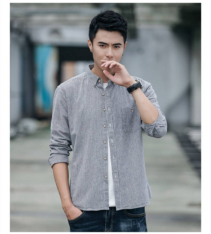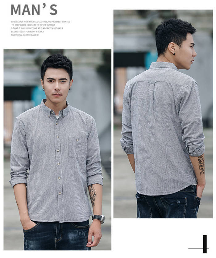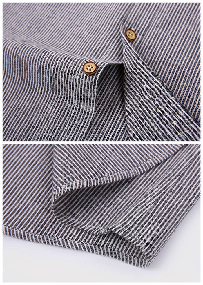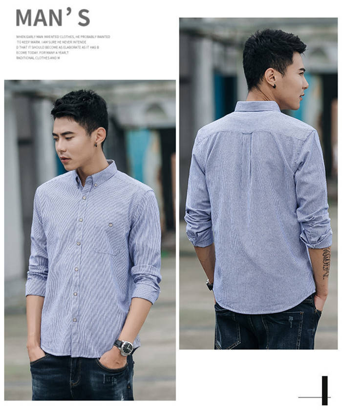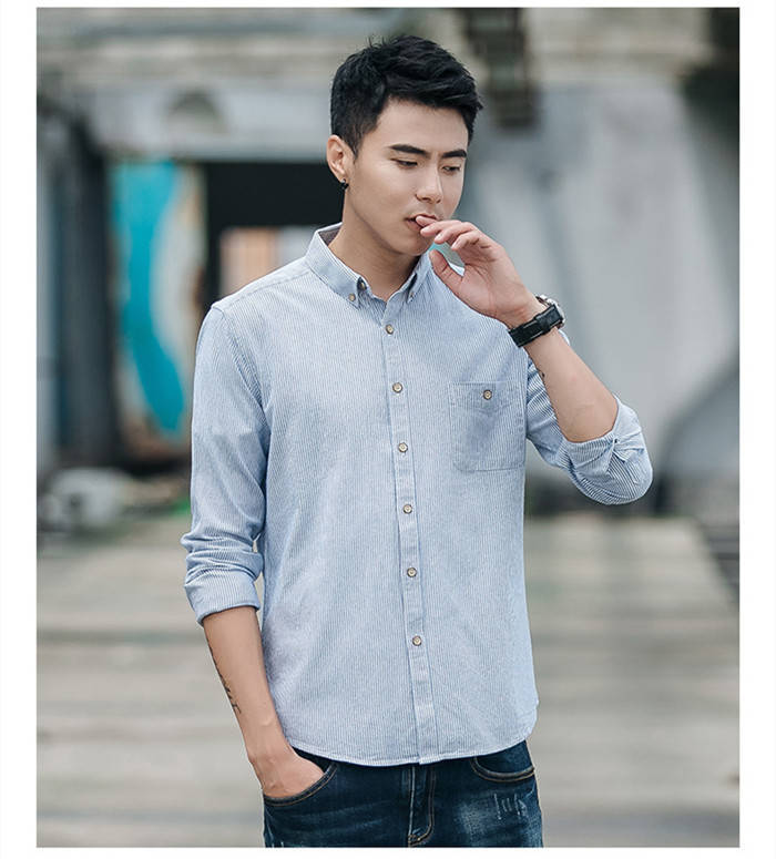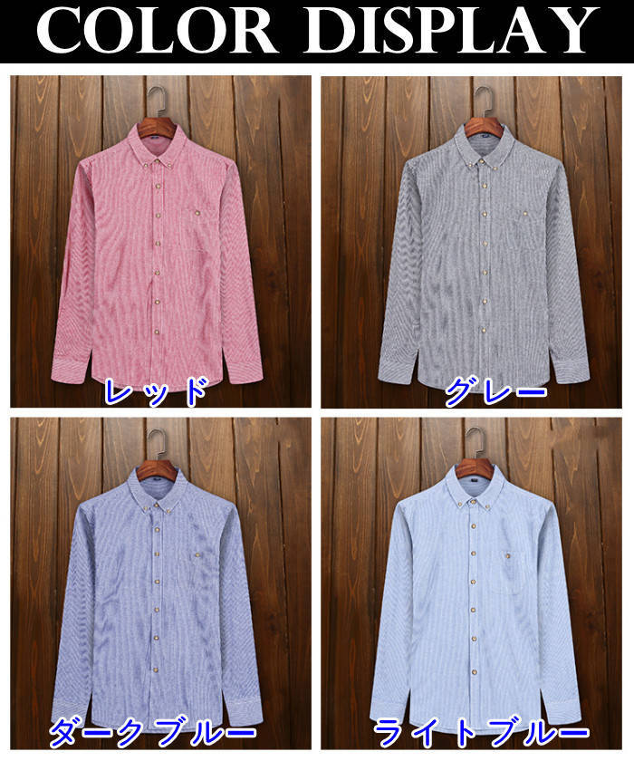 長袖 ストライプ柄 カジュアル ボタン