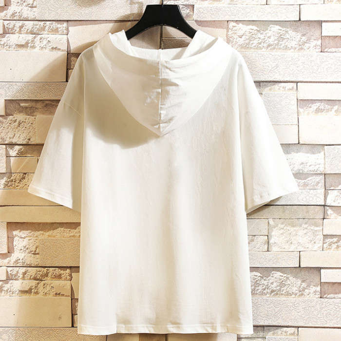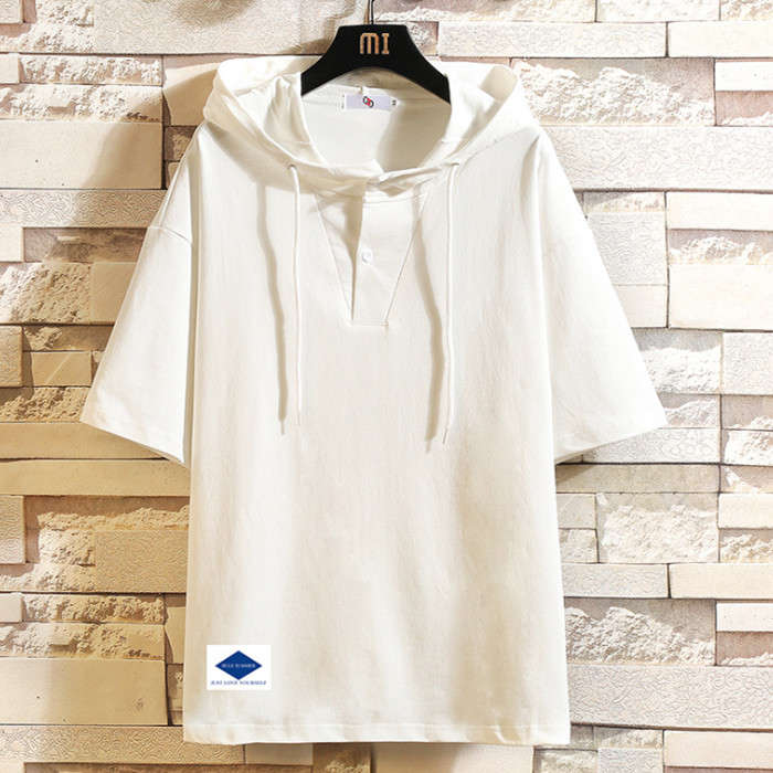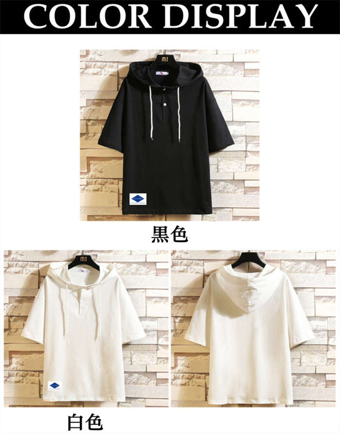 夏新作 フード付きTシャツ 無地 半袖パーカー ゆったり 2colors 白色 黒色メンズファッション トップス パーカー