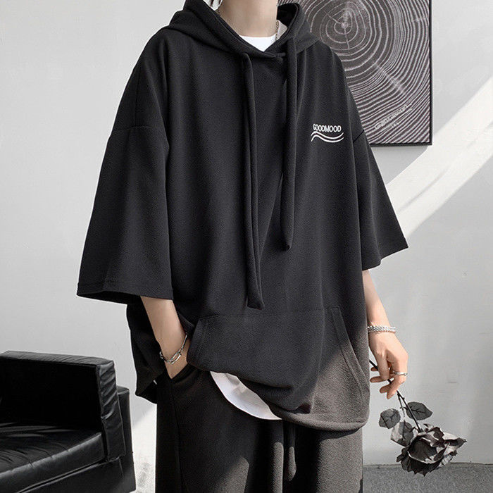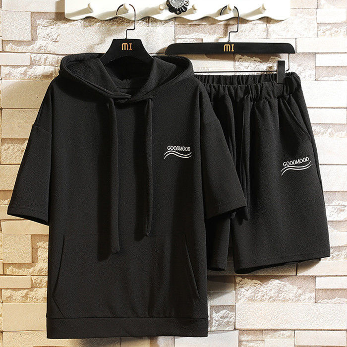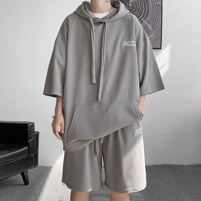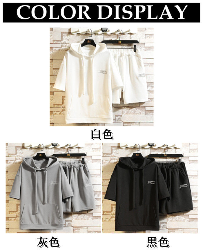 サマーセット 2点上下セット 英語柄 ランニングウェア ハーフパンツ 男性 半袖 パーカー 3色 灰 白 黒