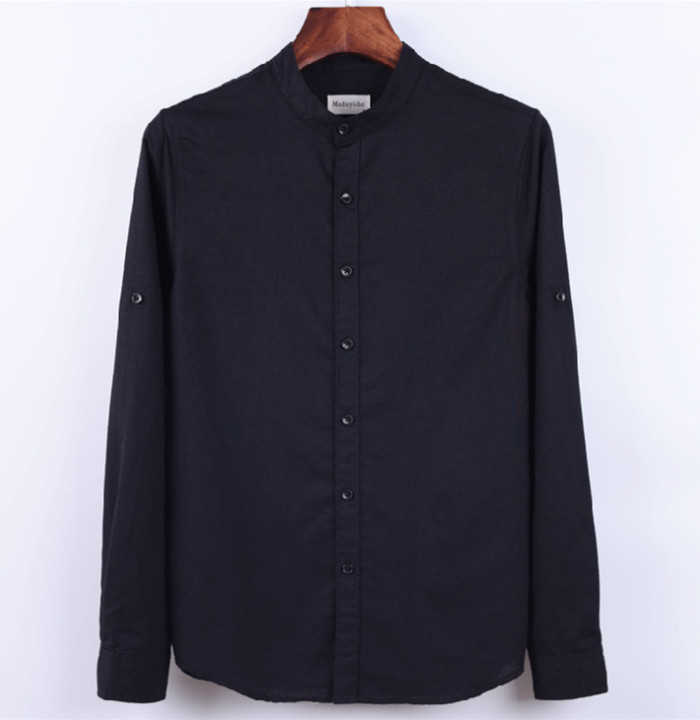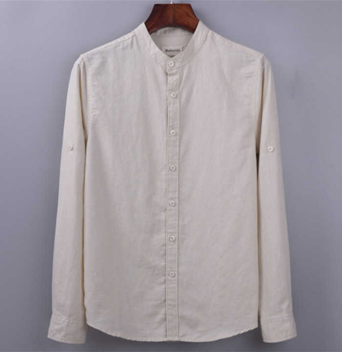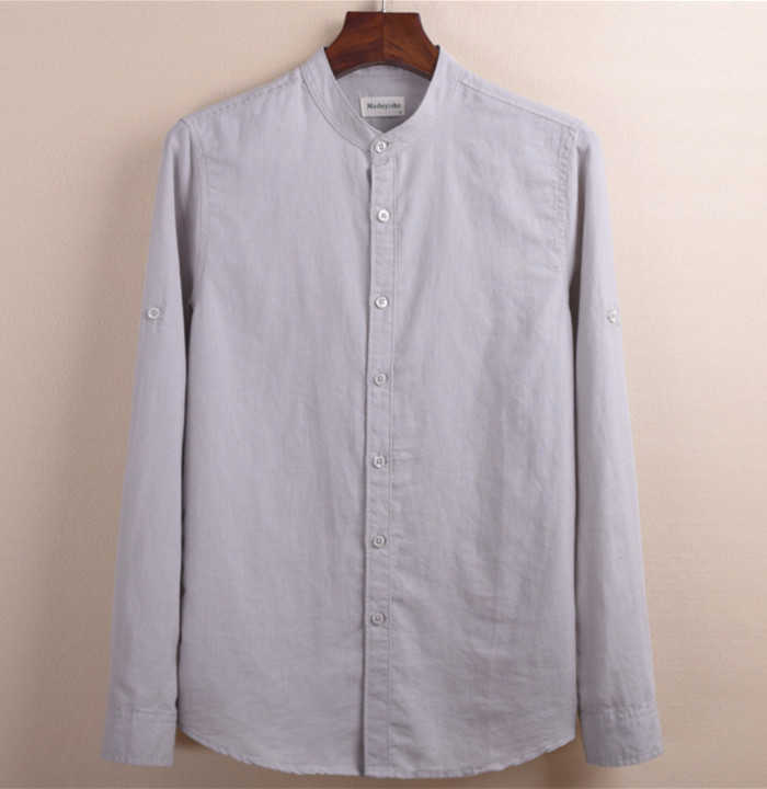 綿麻 長袖シャツ 立ち襟 カジュアル 男性用 トップス 春服 6色 空色 白色 灰色 黒色メンズファッション トップス カジュアルシャツ