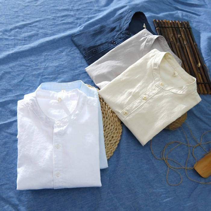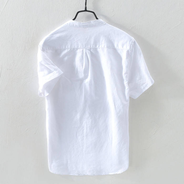 綿麻 半袖シャツ 立ち襟 カジュアル