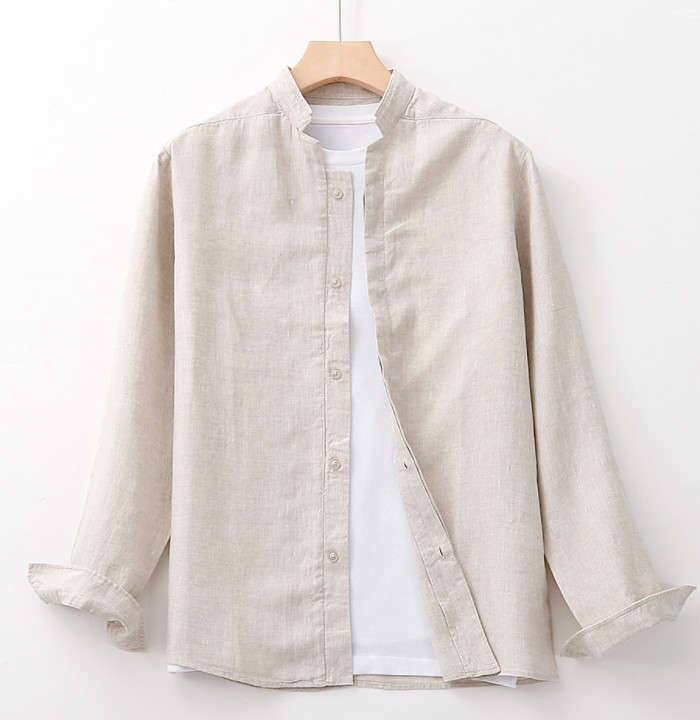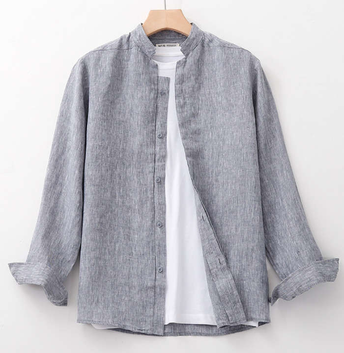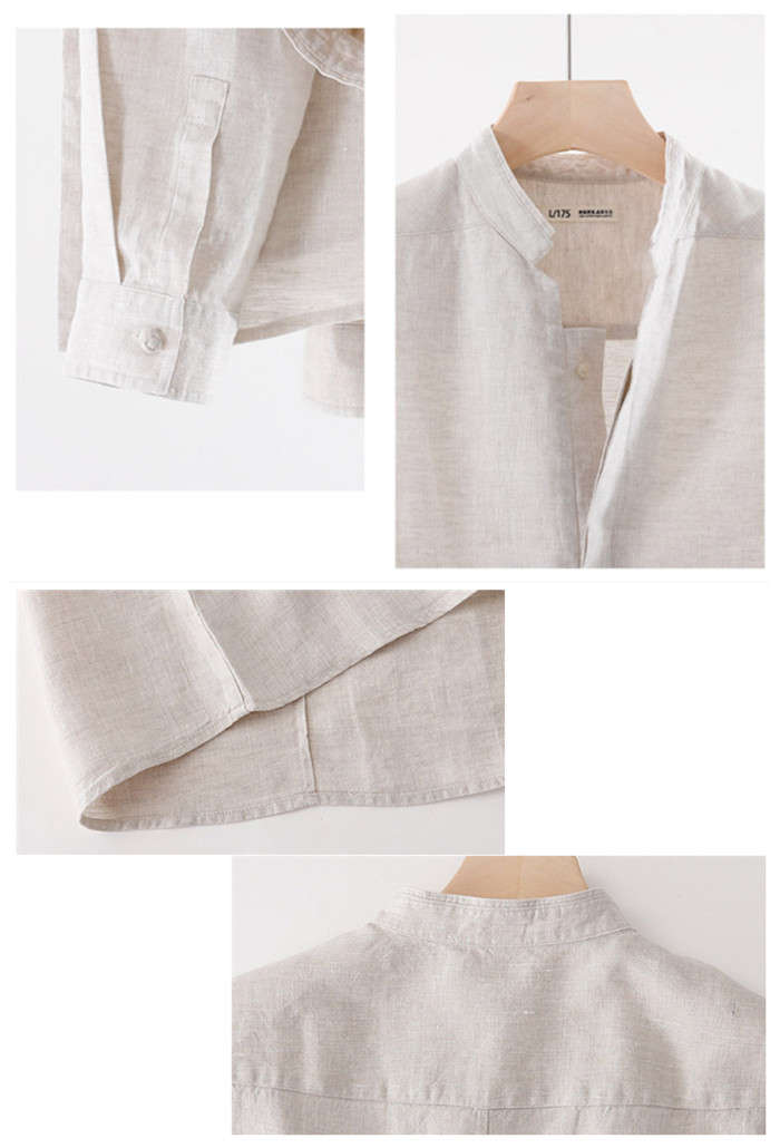 綿麻 長袖シャツ 立ち襟 カジュアル 男性用 トップス 春服 3色 白色 灰色メンズファッション トップス カジュアルシャツ
