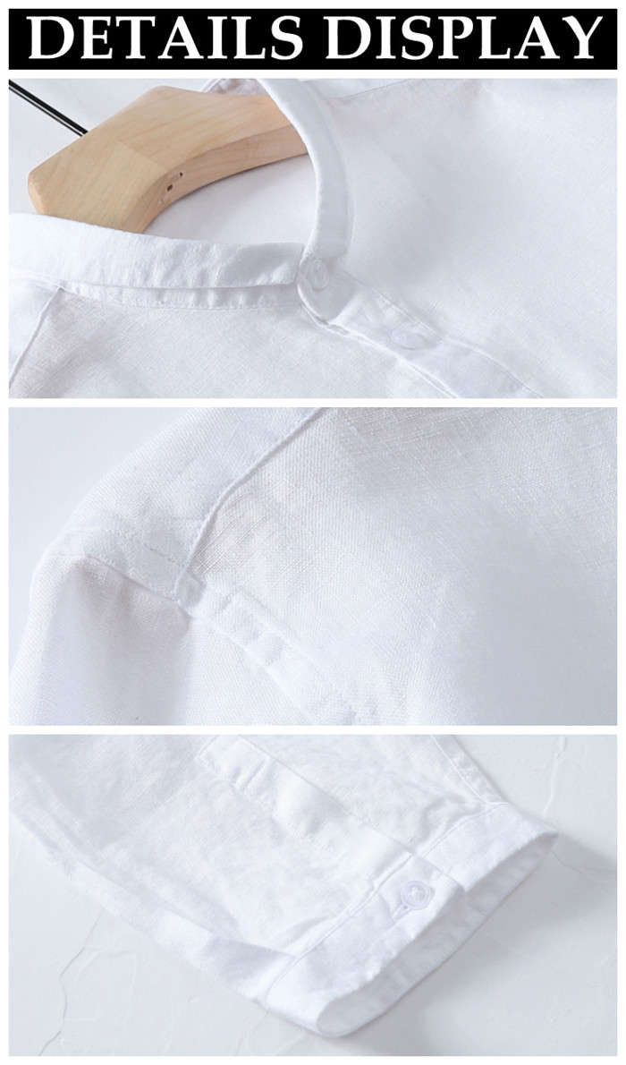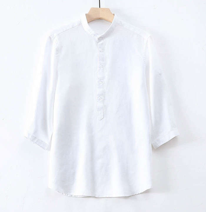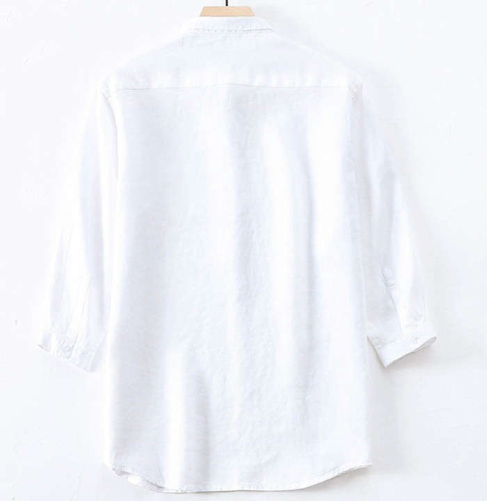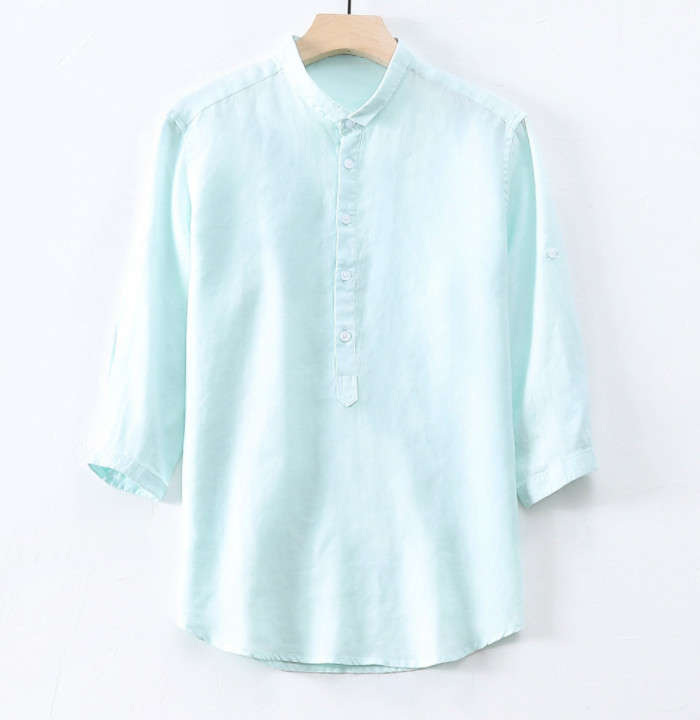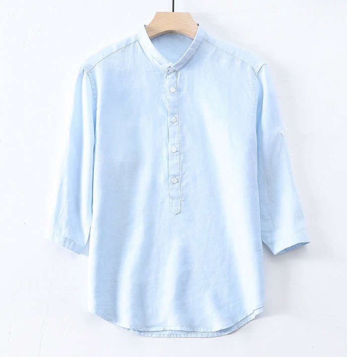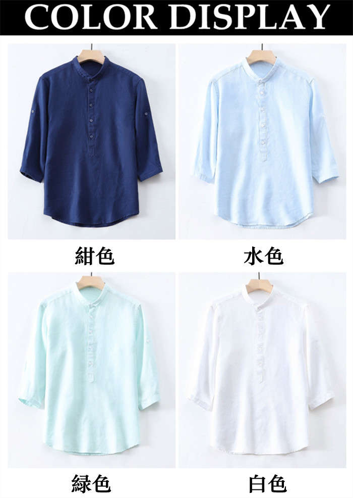 春夏服 綿麻 七分袖シャツ カジュアル 男性用 トップス 4色 紺色 水色 緑色 白色メンズファッション トップス カジュアルシャツ