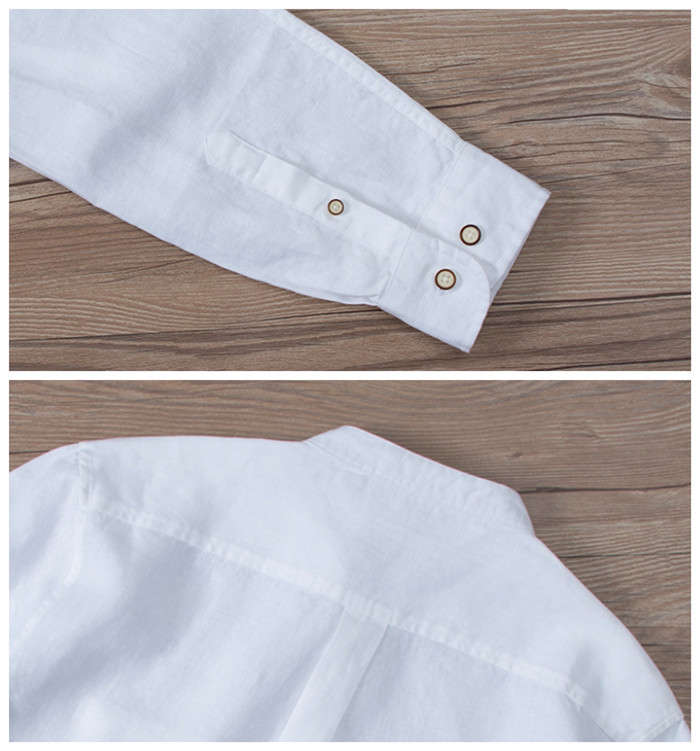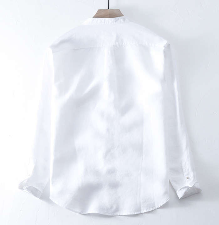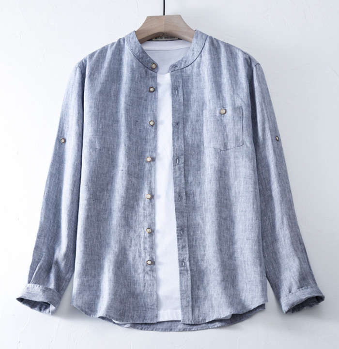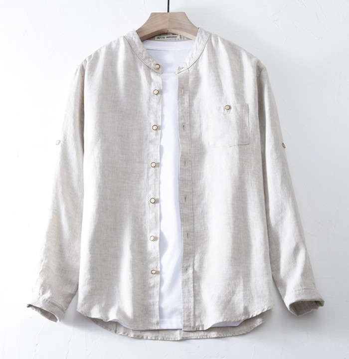 綿麻 長袖シャツ 立ち襟 カジュアル
