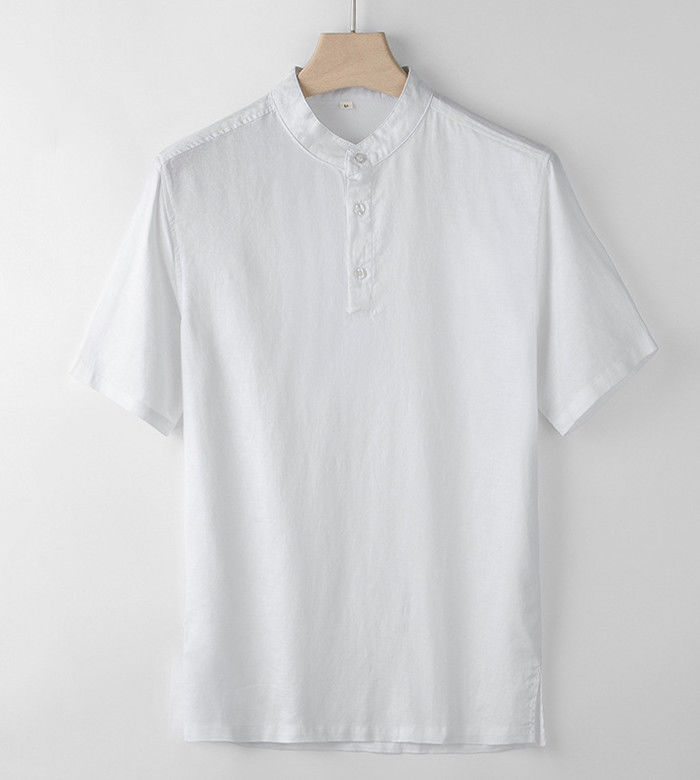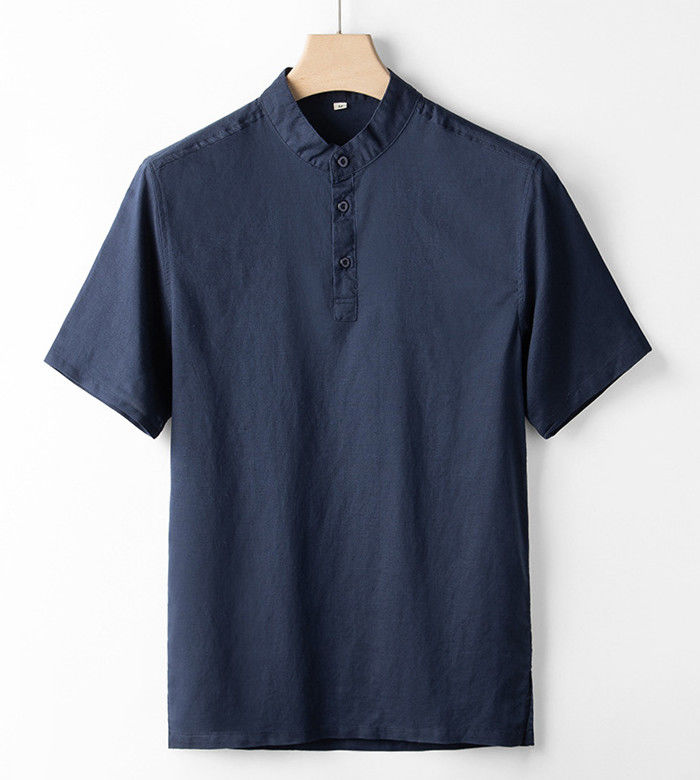 綿麻 接触冷感 プルオーバー 半袖シャ