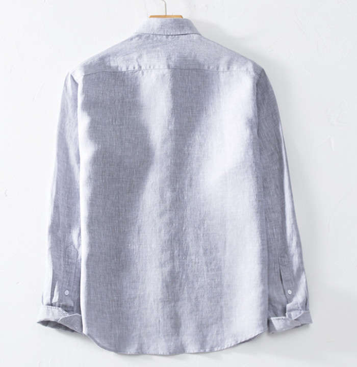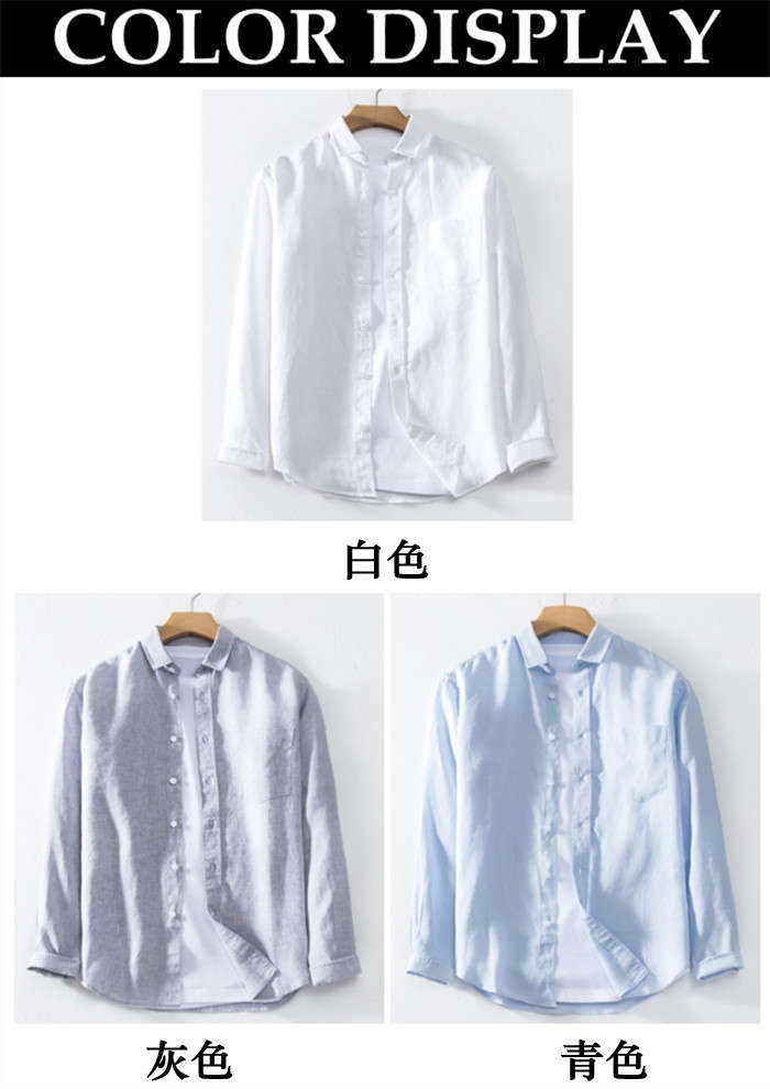 綿麻 長袖シャツ カジュアル 男性用 トップス 3色 白色 灰色 青色メンズファッション トップス カジュアルシャツ