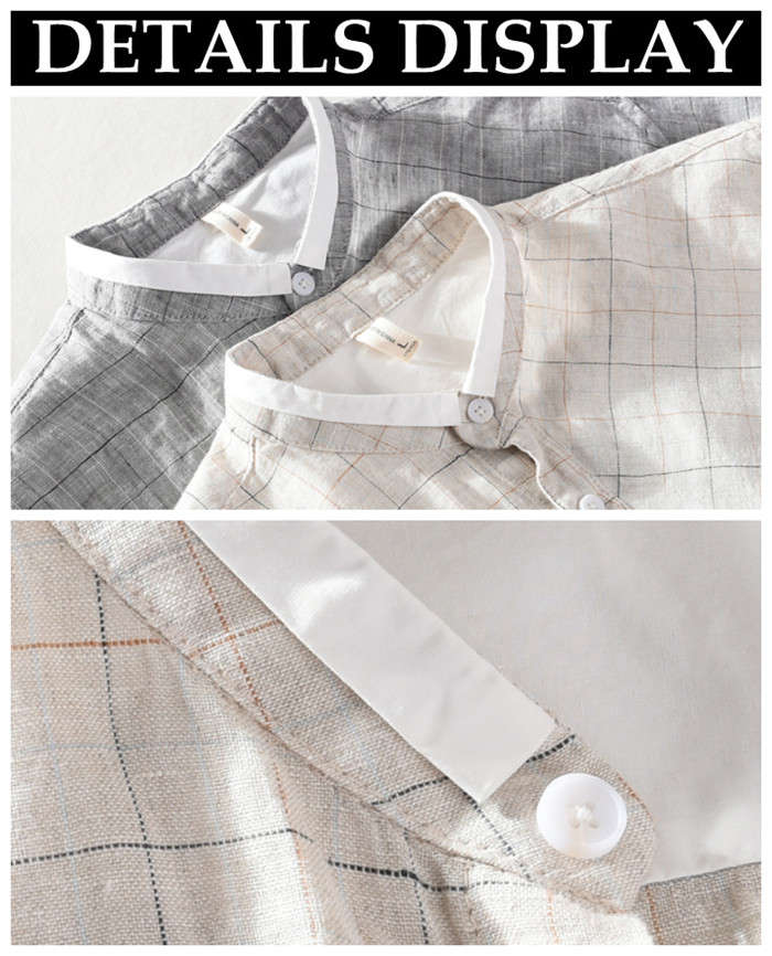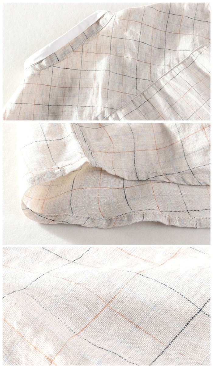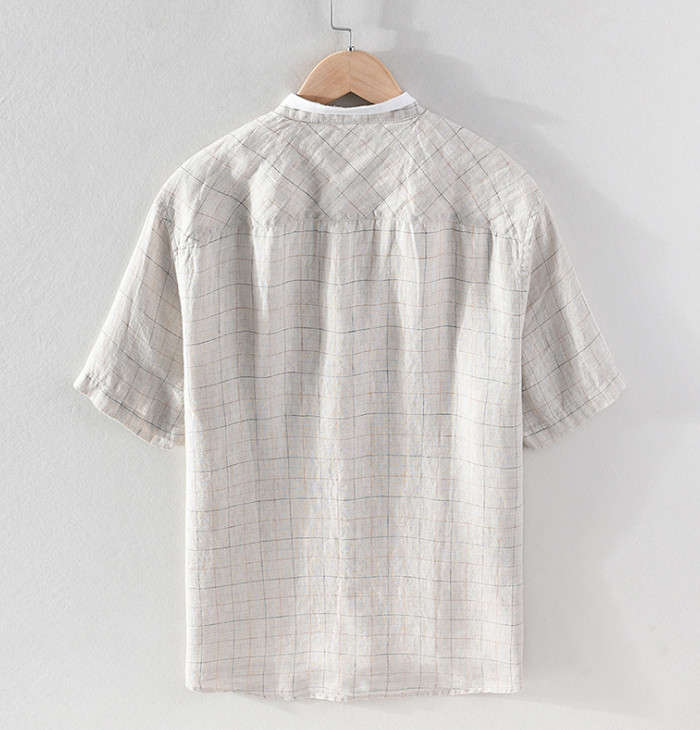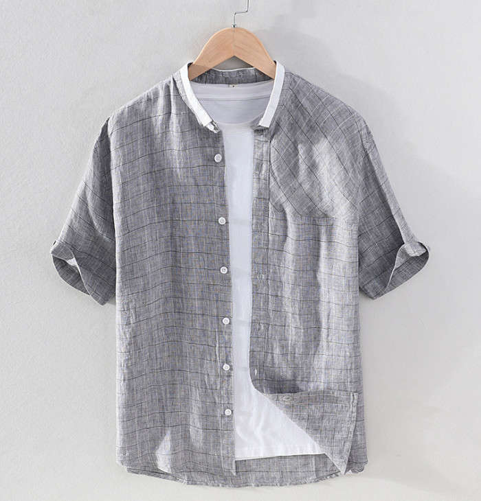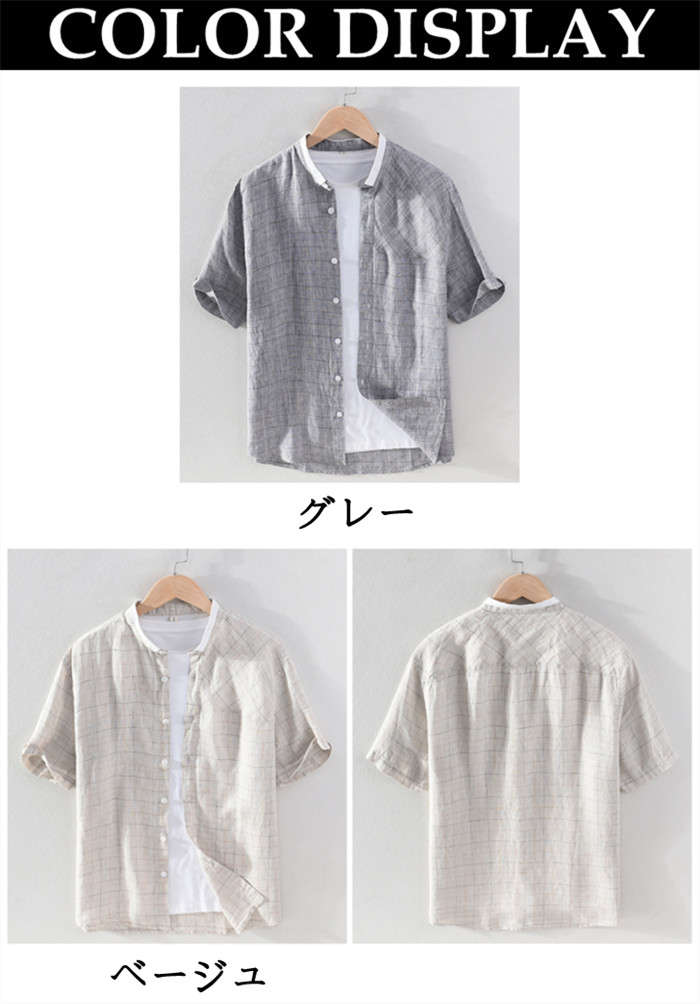 綿麻 半袖シャツ スタンドカラー カジ