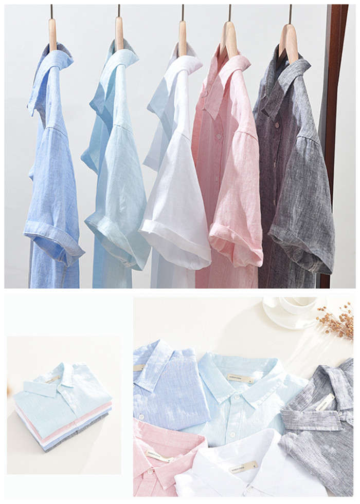 綿麻 無地 半袖シャツ カジュアル 男