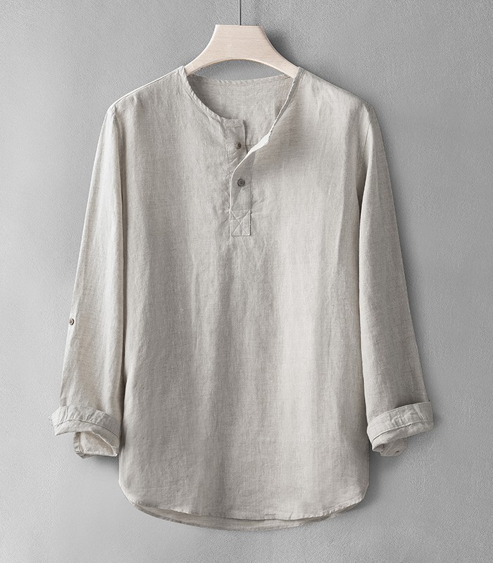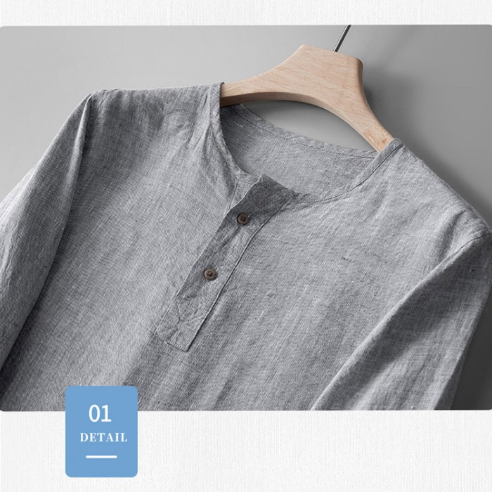 亜麻100% カプリシャツ メンズ 長