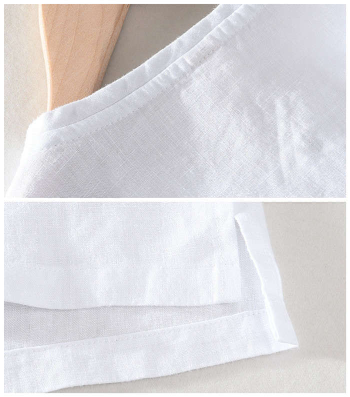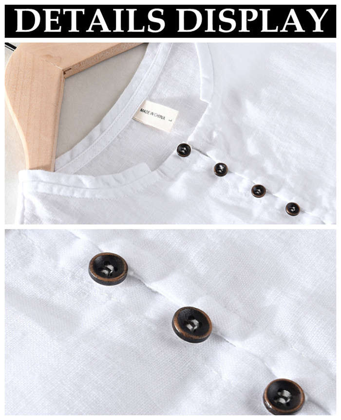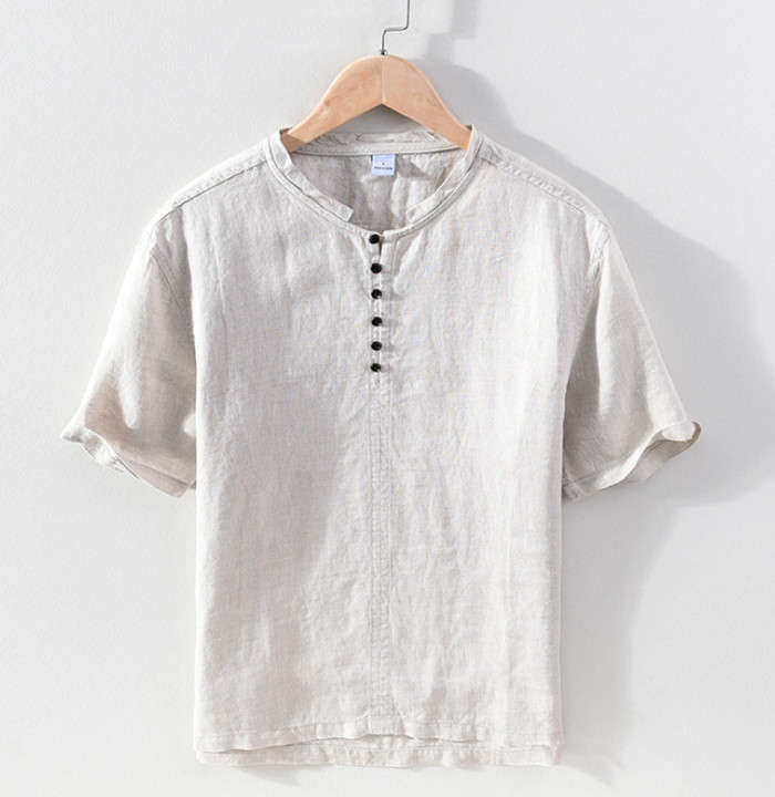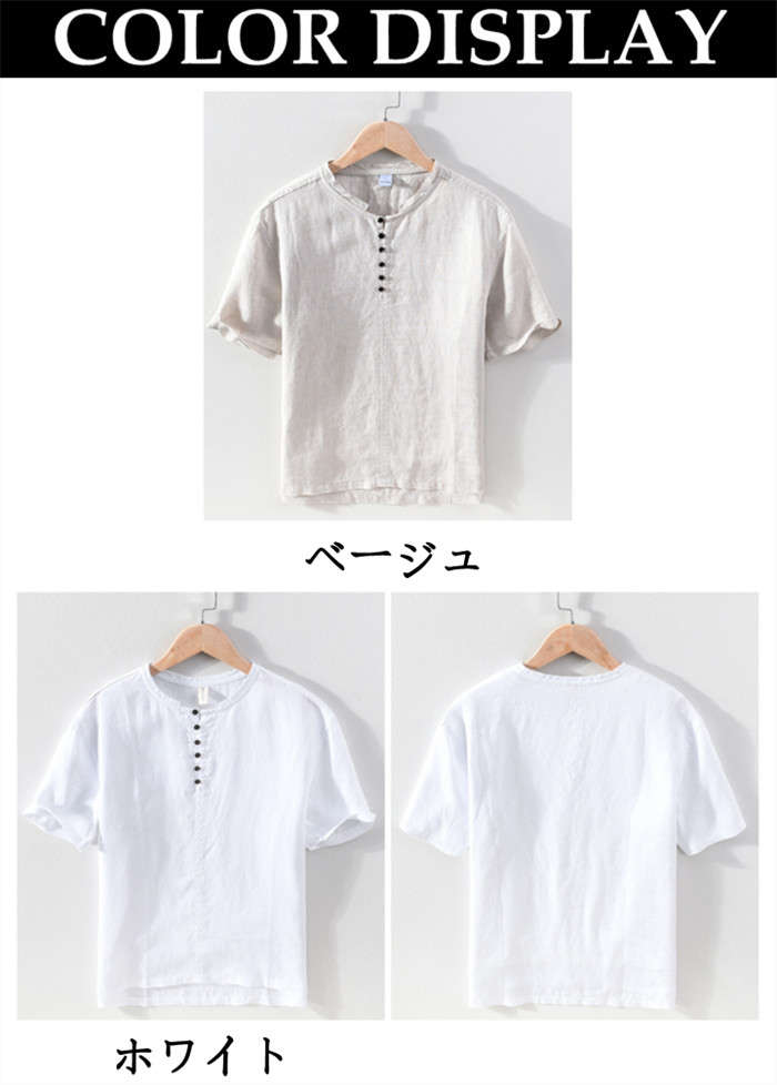 綿麻 半袖Tシャツ 立ち襟 無地 ヘンリーネック カジュアル 男性用 トップス 夏物 2色 白色メンズファッション トップス Tシャツ カットソー