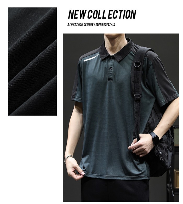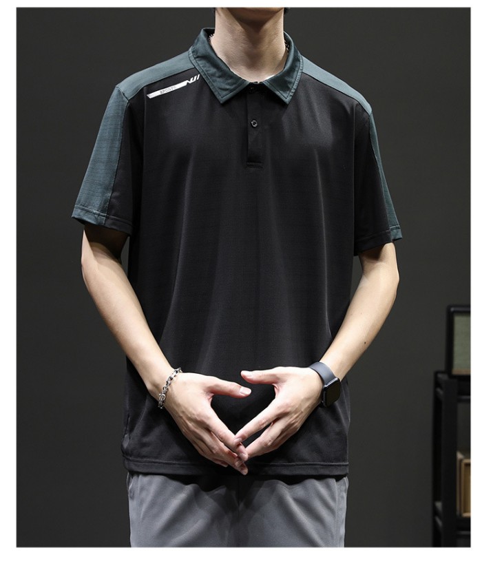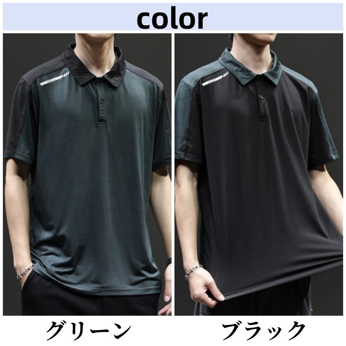 半袖ポロシャツ 切り替え柄 ジャージポロシャツ 夏物 通気 涼しい トップス ブラック グリーンメンズファッション トップス ポロシャツ