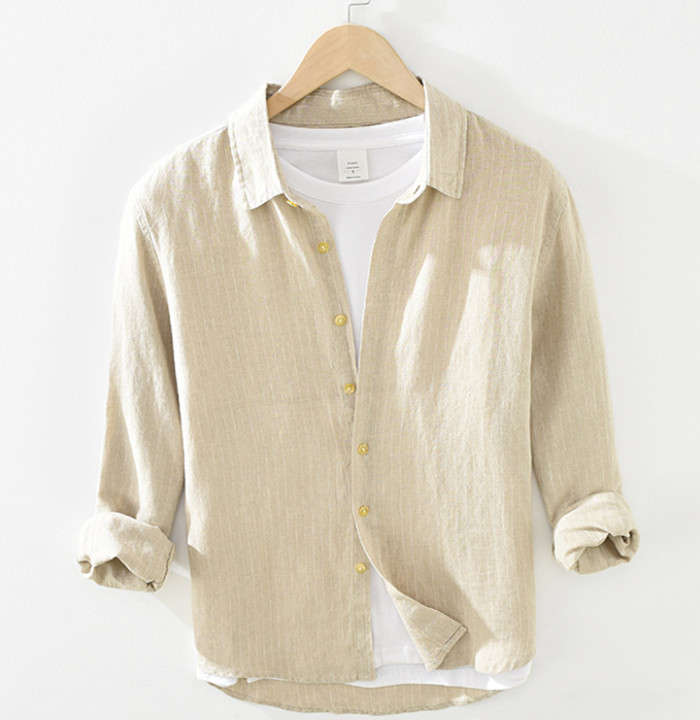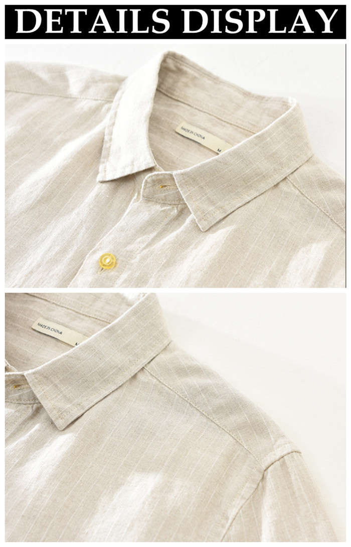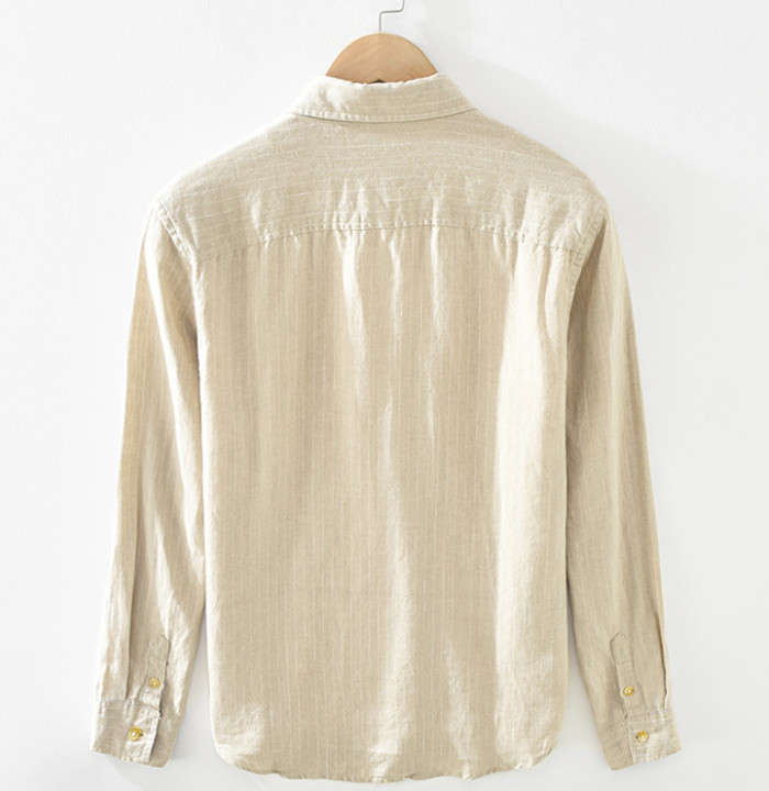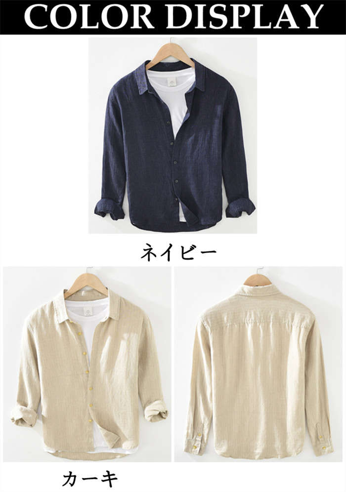 綿麻 ストライプ柄 長袖シャツ カジュアル 男性用 トップス 春服 2色 ネイビー カーキメンズファッション トップス カジュアルシャツ
