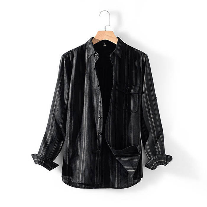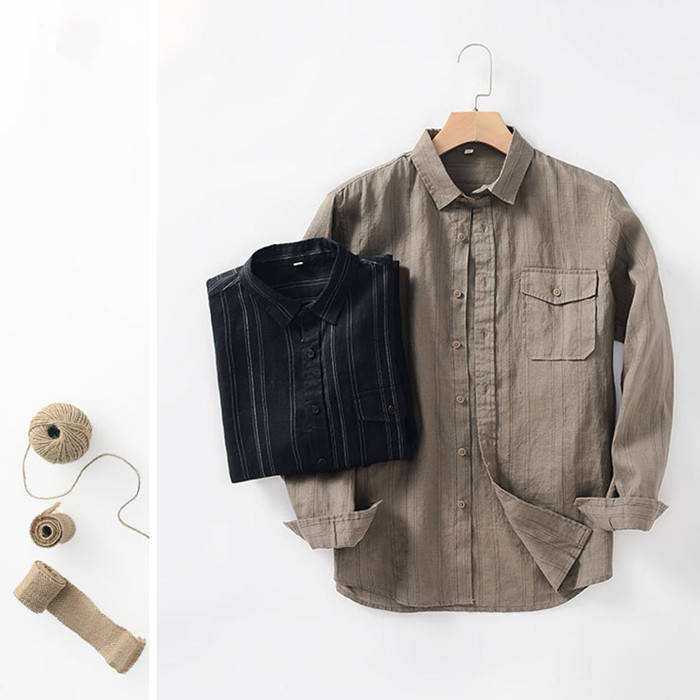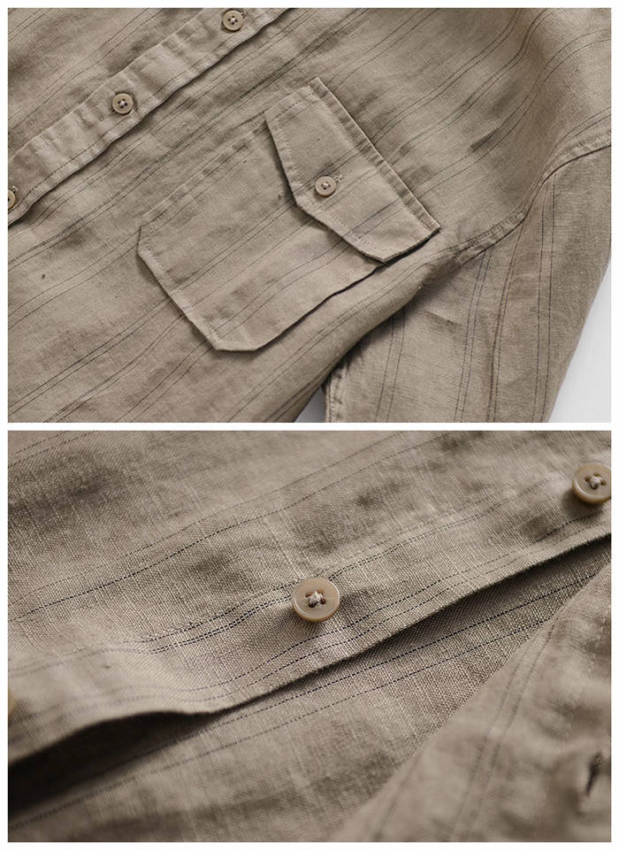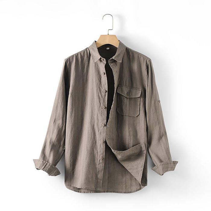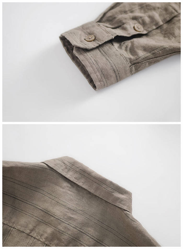 綿麻 長袖シャツ ストライプ柄 カジュ