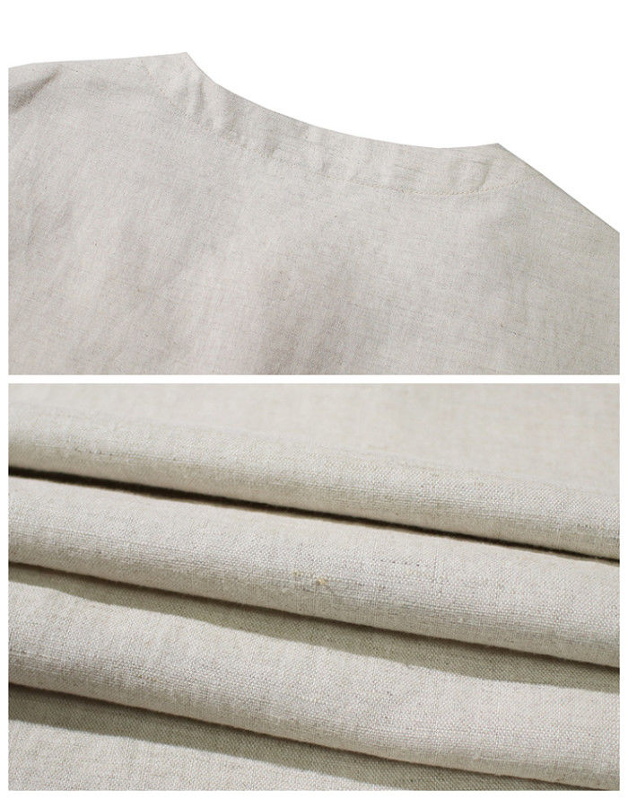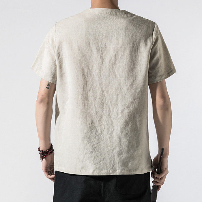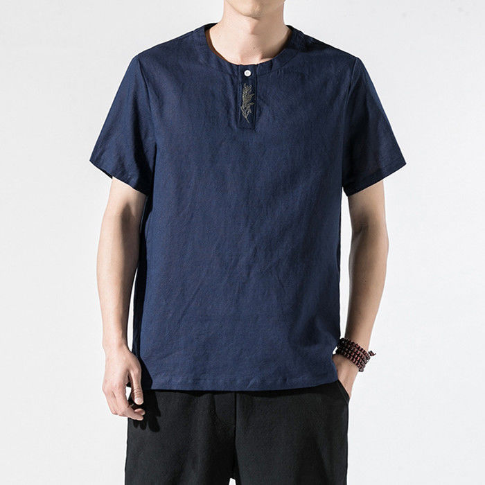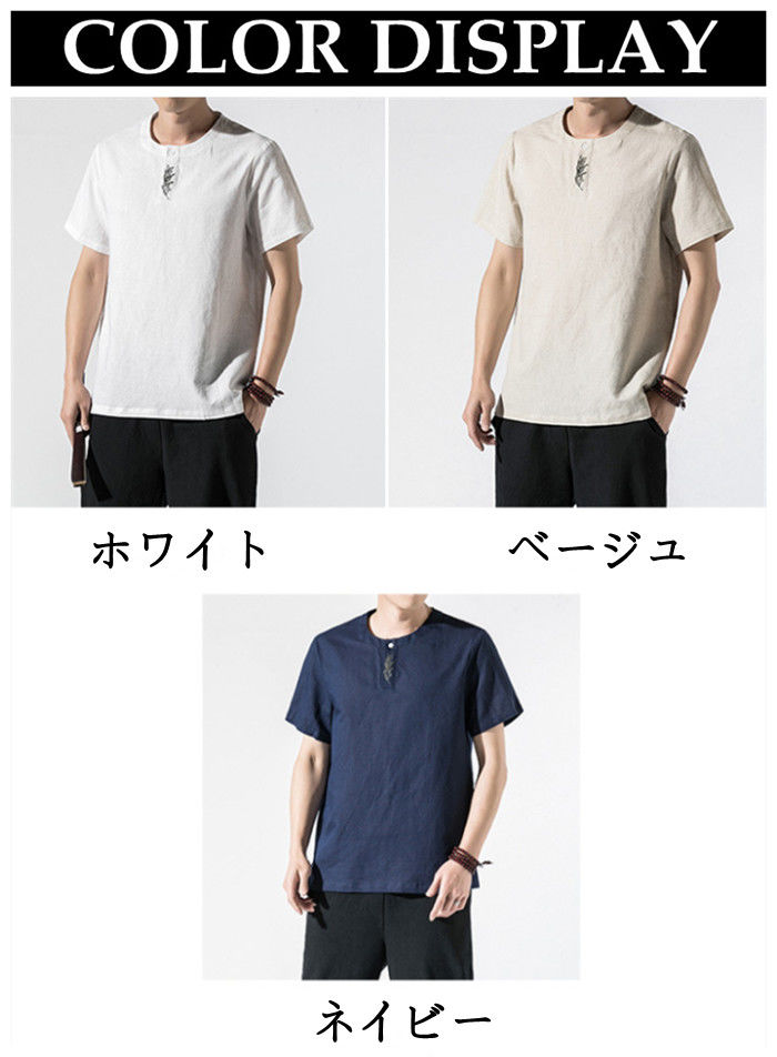 綿麻 刺繍 半袖Tシャツ カジュアル