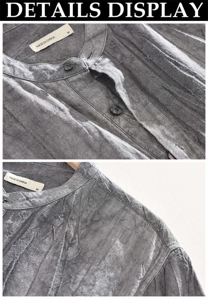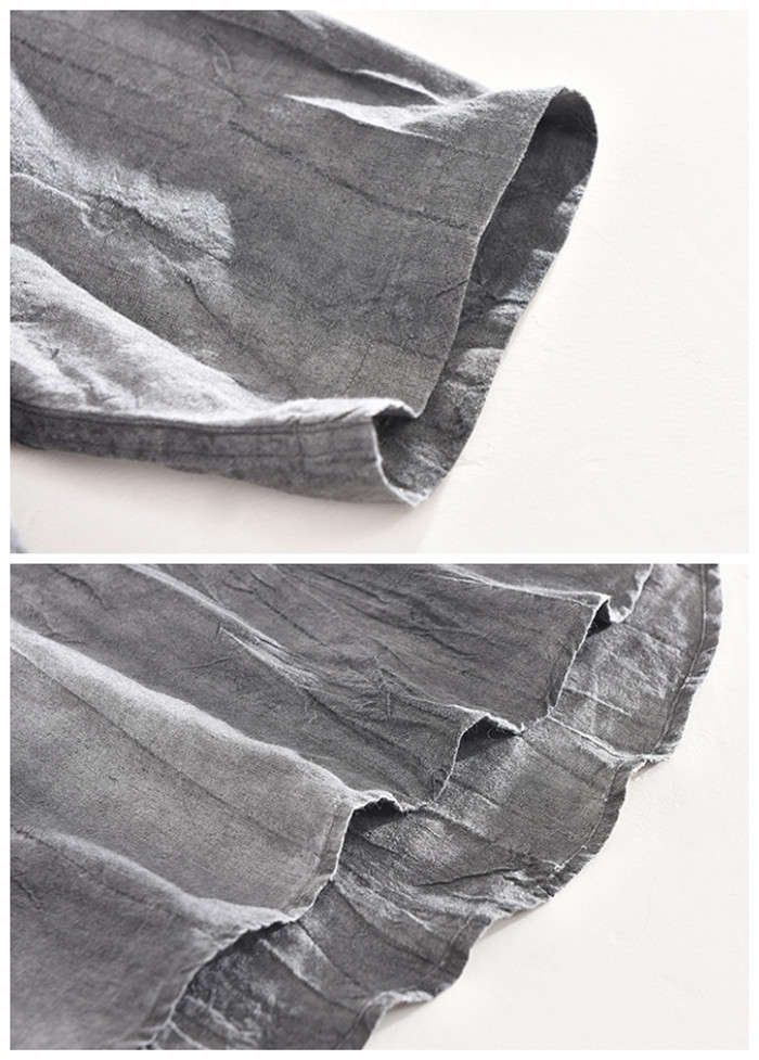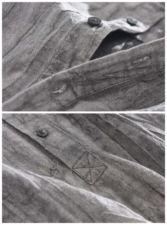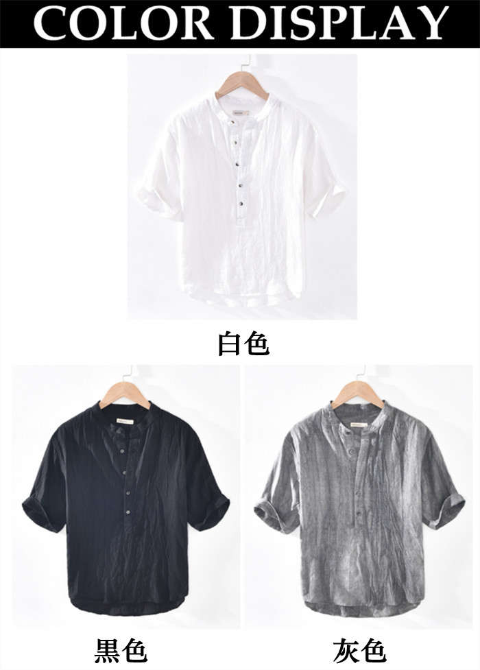亜麻 半袖シャツ 五分袖 ヘンリーネッ