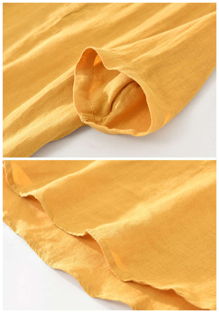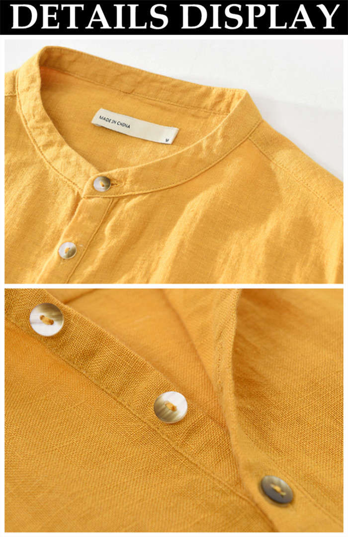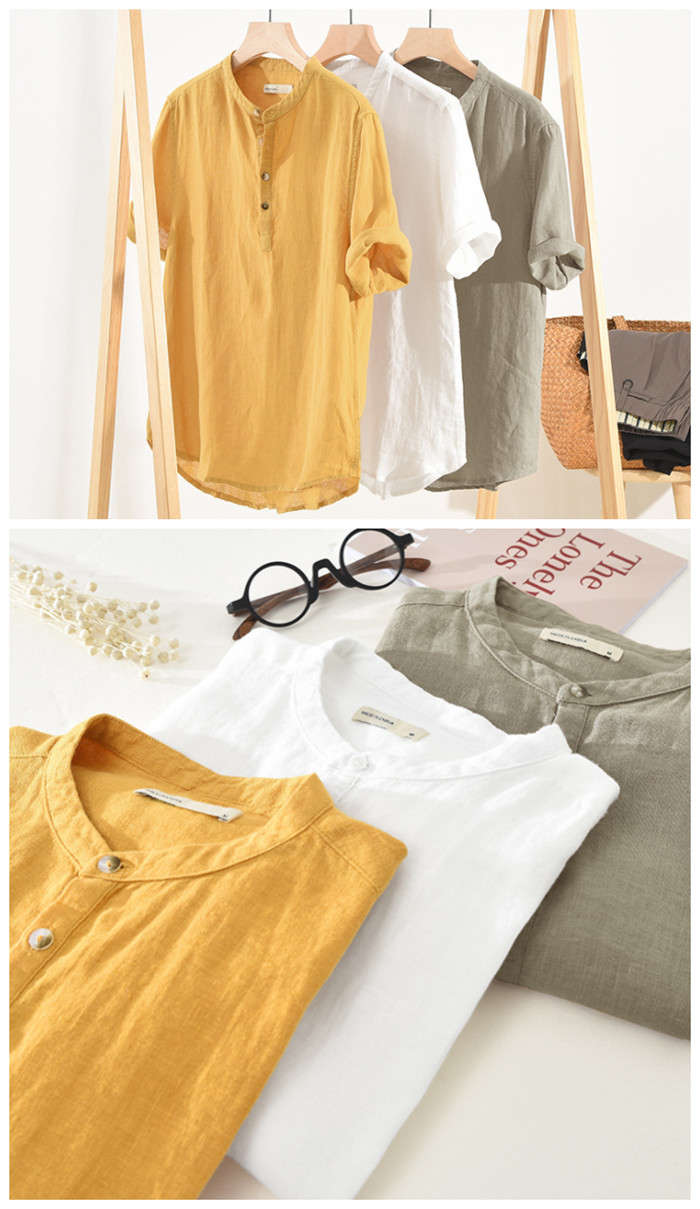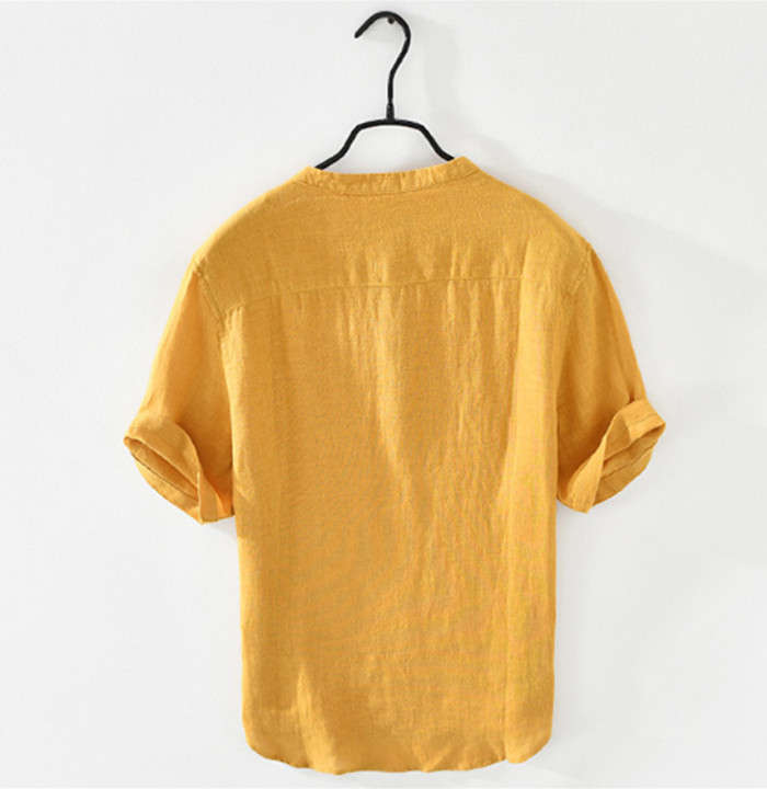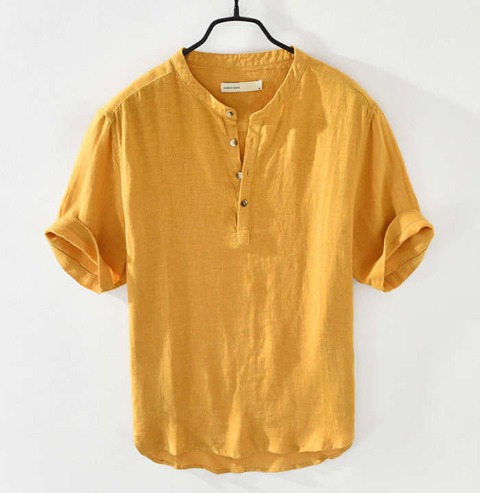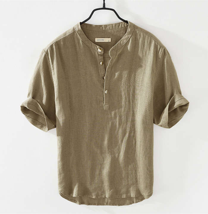 亜麻 半袖シャツ 五分袖 ヘンリーネッ