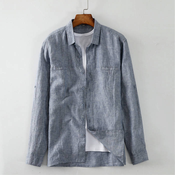 シャツ リネンシャツ 長袖シャツ メン