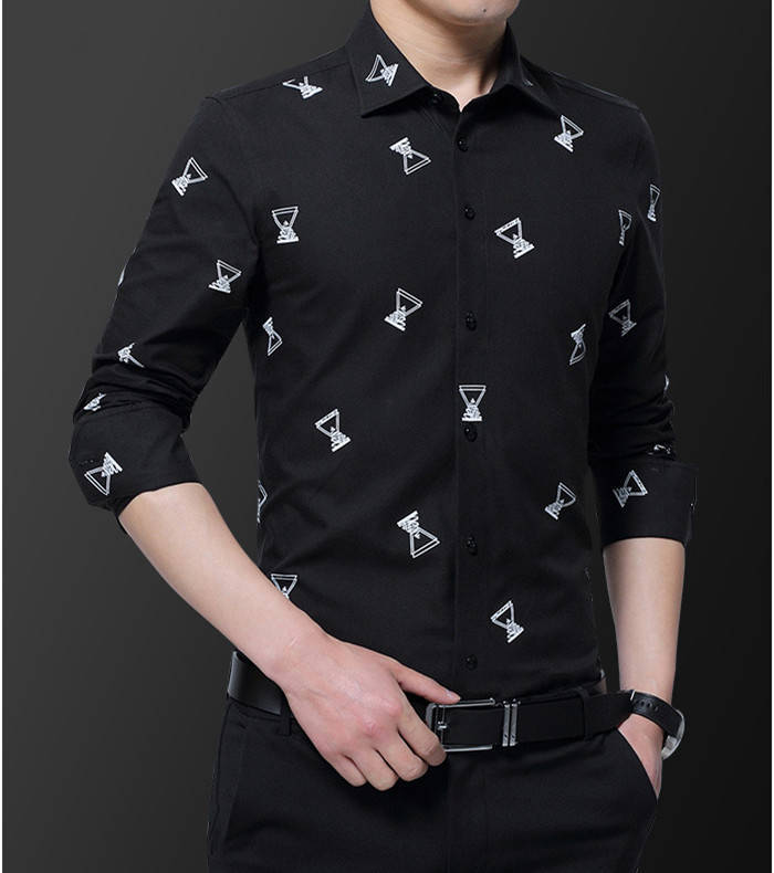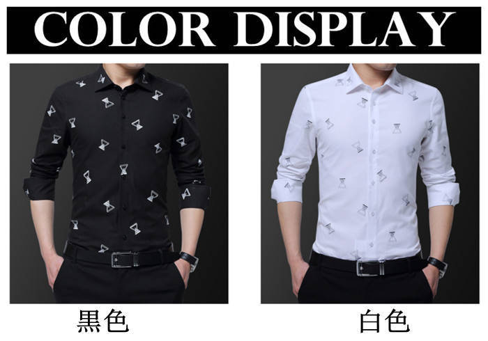 長袖 プリント柄 カジュアルシャツ コットン トップス 黒 白メンズファッション トップス カジュアルシャツ