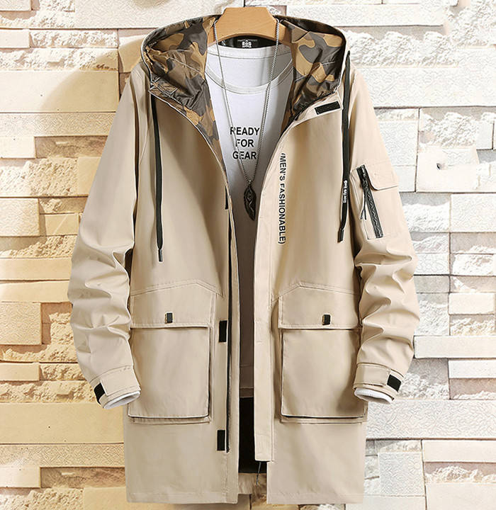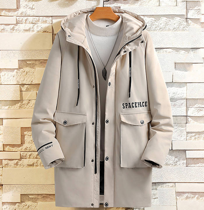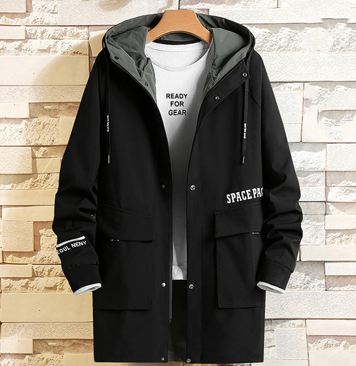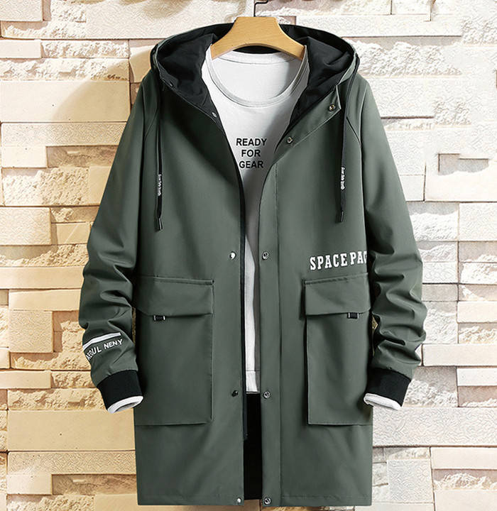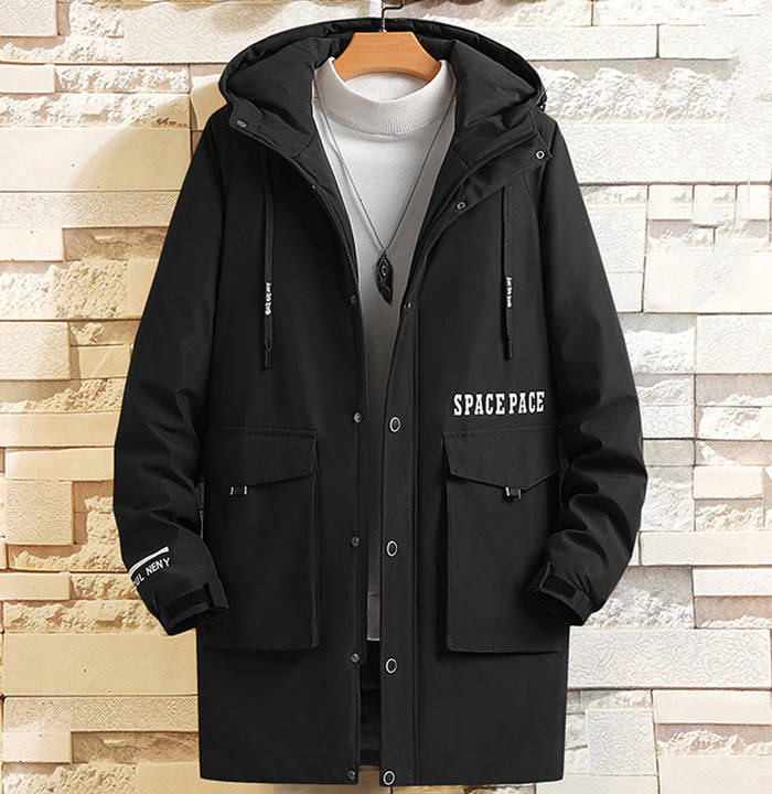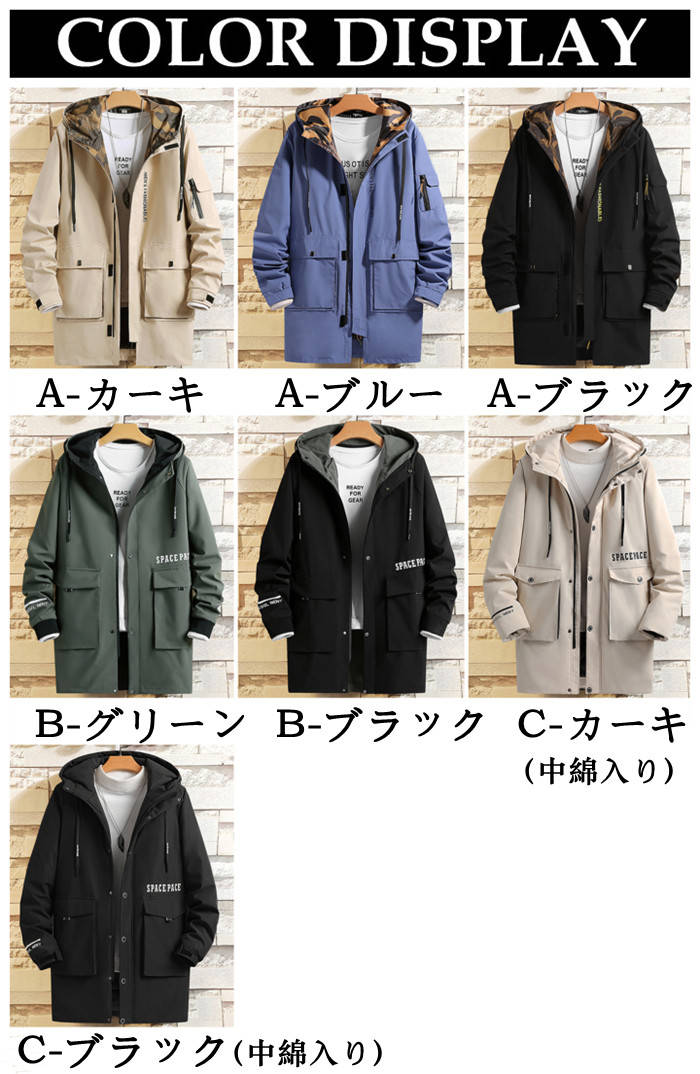 中綿入り 男性用 フード付き スプリングコート ミドル丈 アウター 3styles 黒色 緑色メンズファッション コート ジャケット