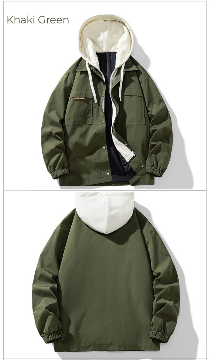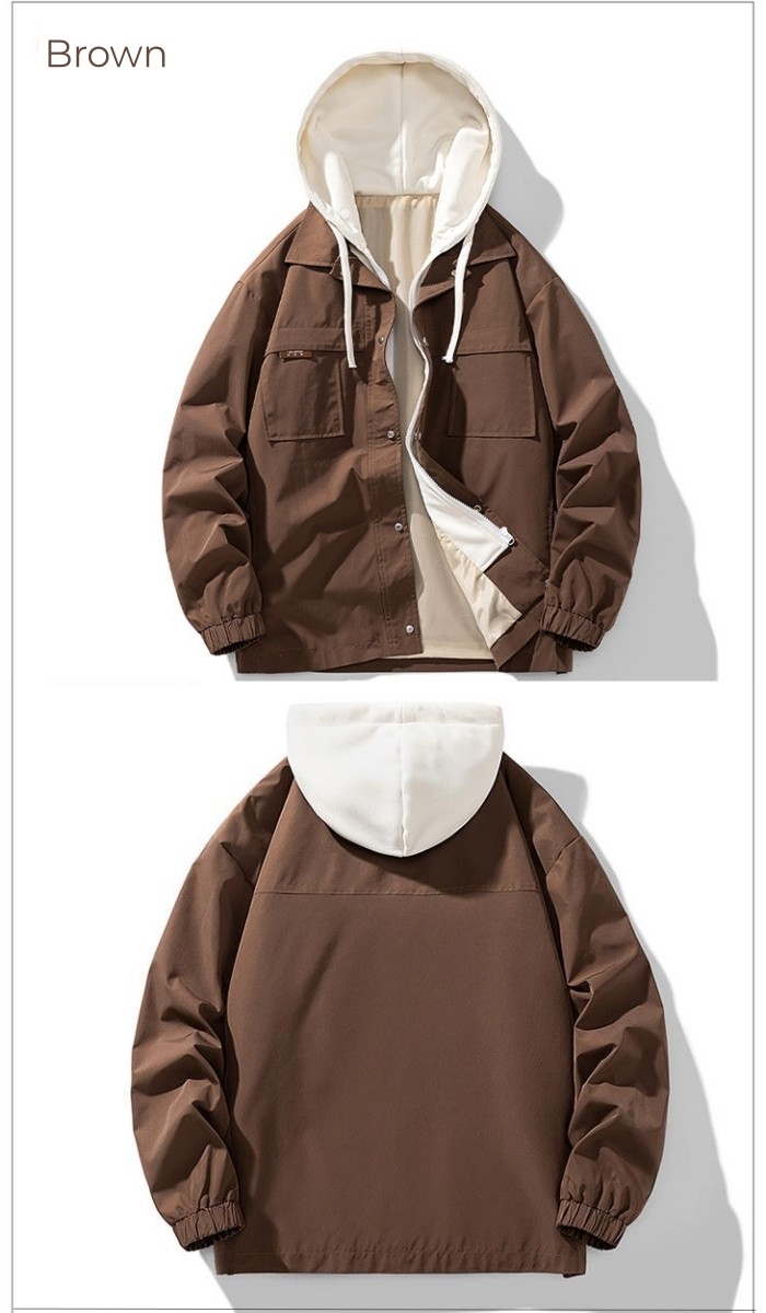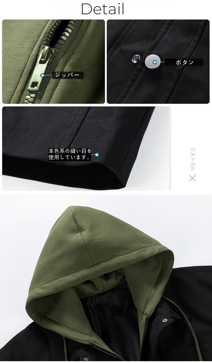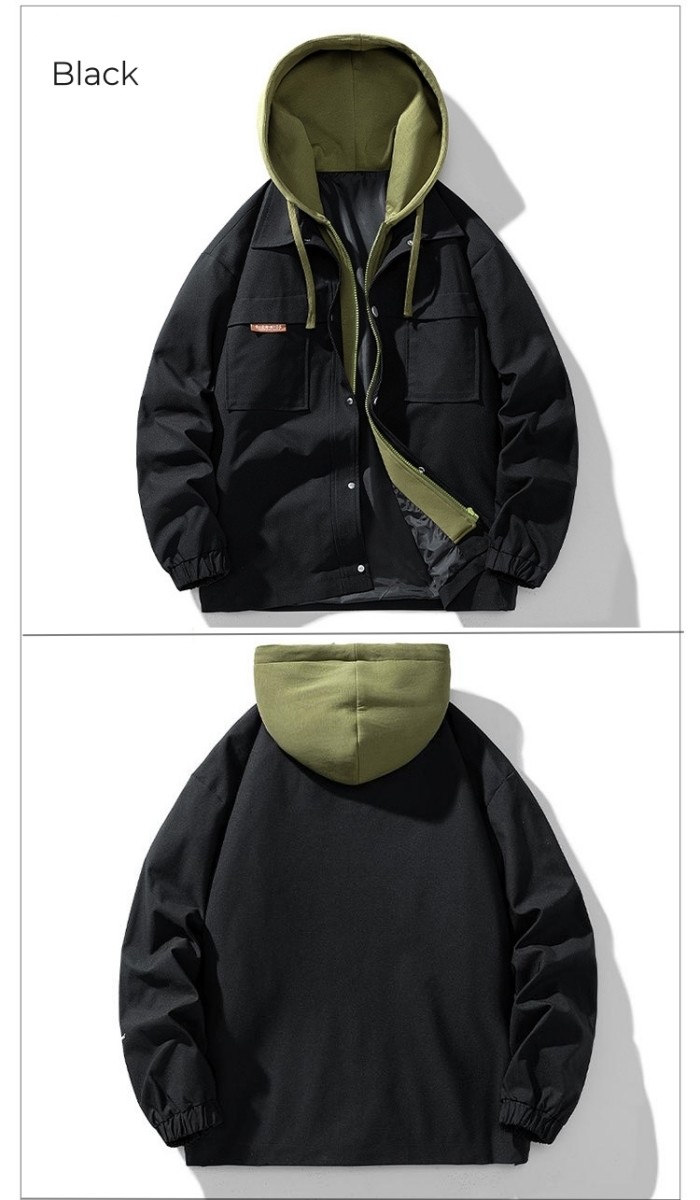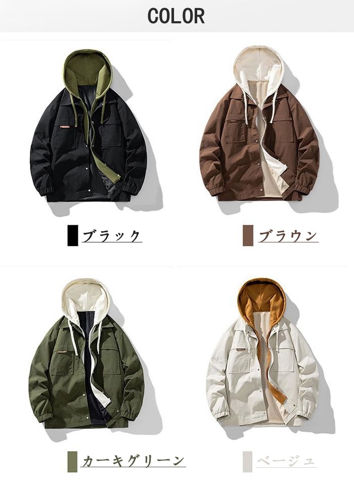 ジャケット 重ね着風 ショートコート フーディー ライトアウター 登山 4colors 黒色 カーキグリーン