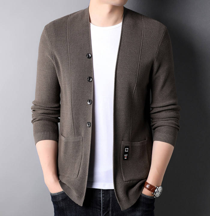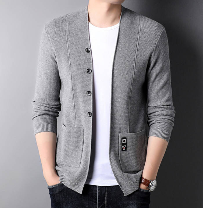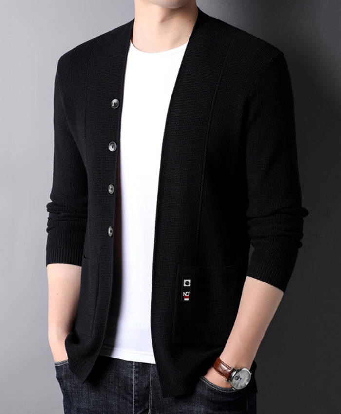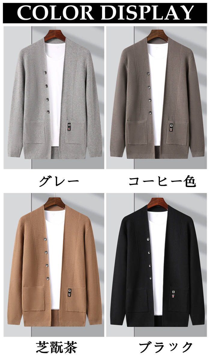 カーディガン Vネック ニット ショートコート アウター 秋冬新作 4色 黒色 灰色メンズファッション トップス カーディガン