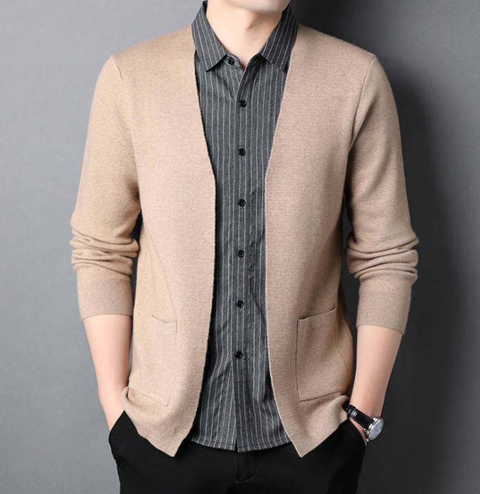 カーディガン Vネック ニット ショートコート アウター 秋冬新作 3色 黒色 灰色メンズファッション トップス カーディガン
