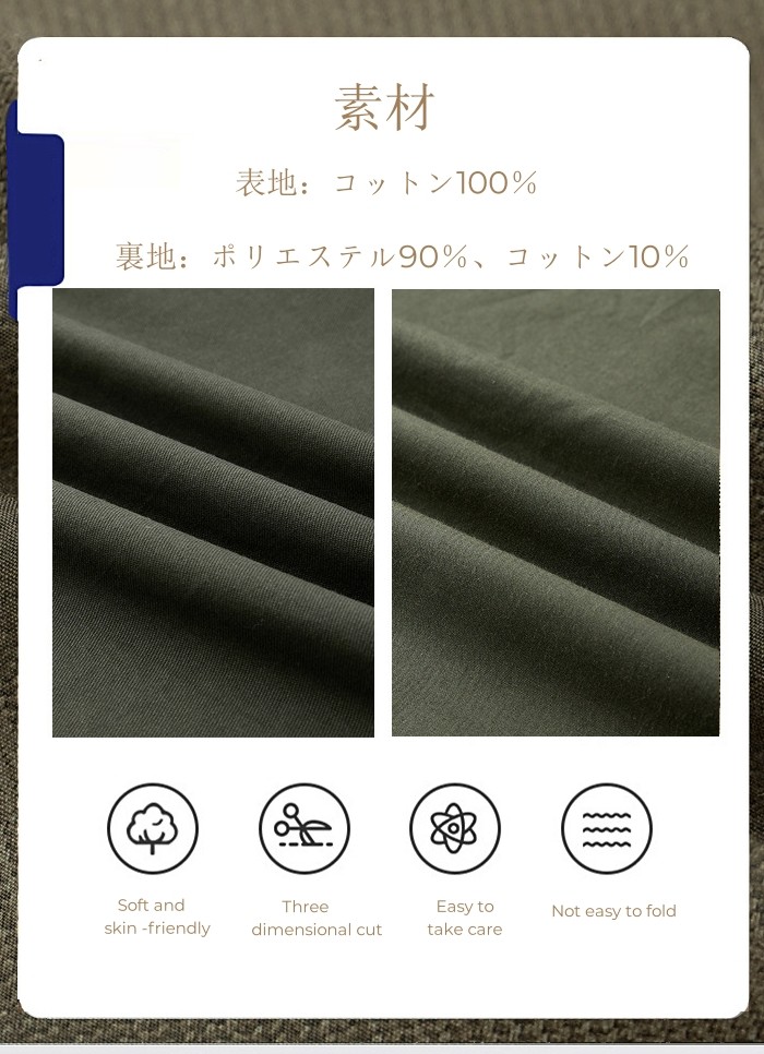カラー展開:カーキ、キャメル色、ベージュ、ネイビー、カーキグリーン