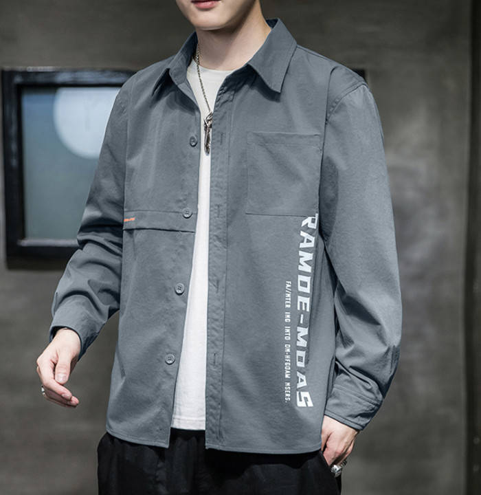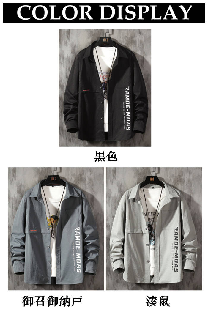 シャツジャケット 長袖 カジュアル ワークシャツ 男性用 トップス 3色 黒色 御召御納戸 湊鼠メンズファッション トップス カジュアルシャツ