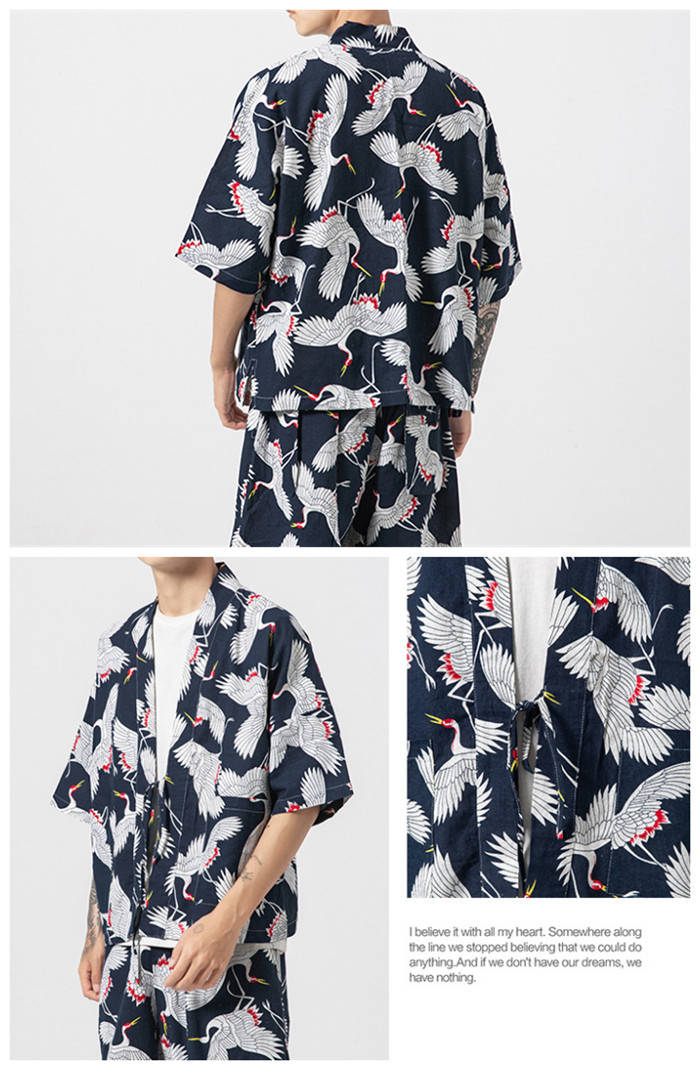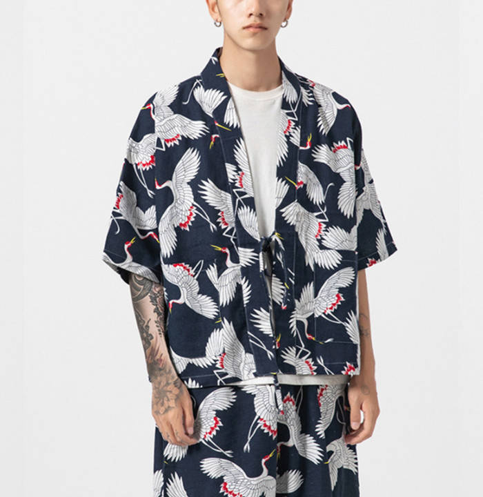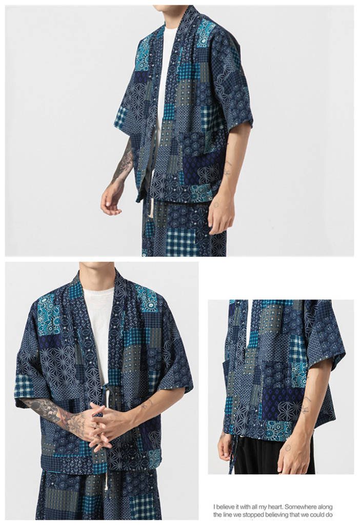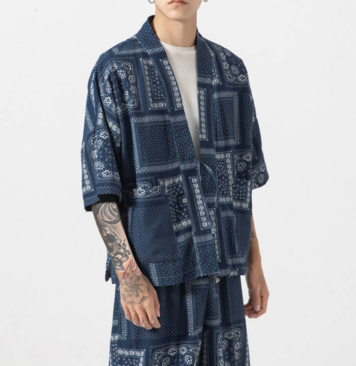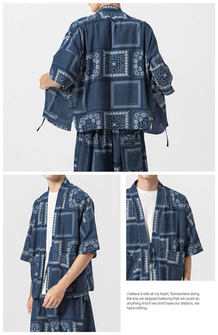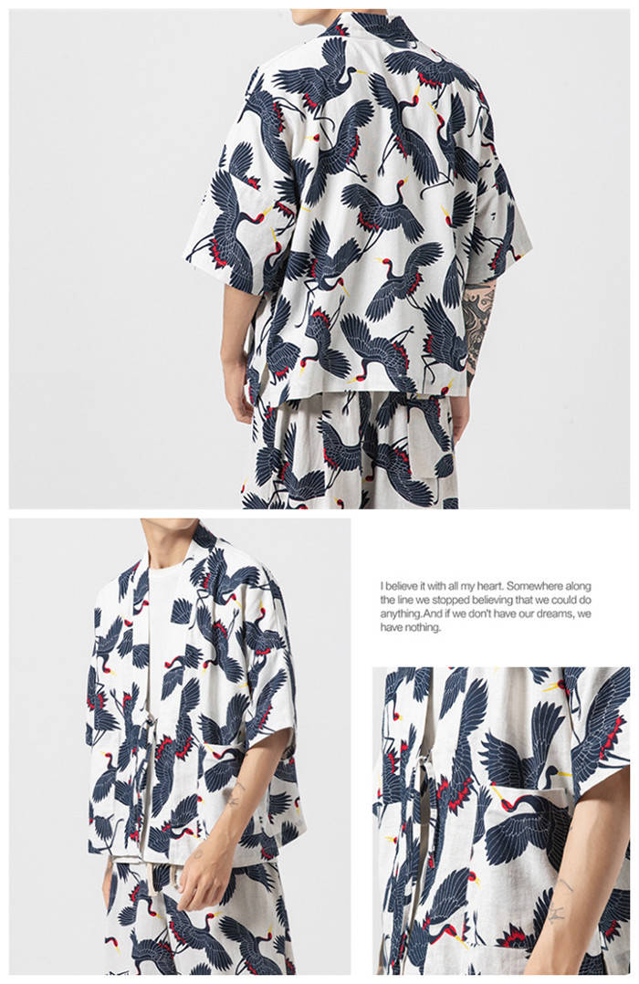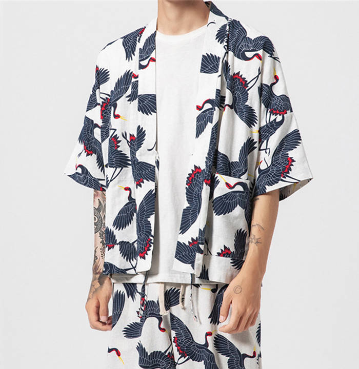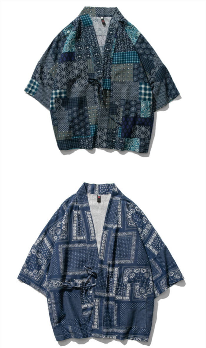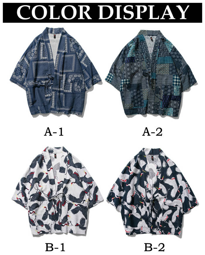 カーディガン 和風 和服 ゆったり 総柄 トップス アウター 春夏服 4色 白色メンズファッション 和服 着物