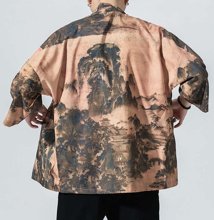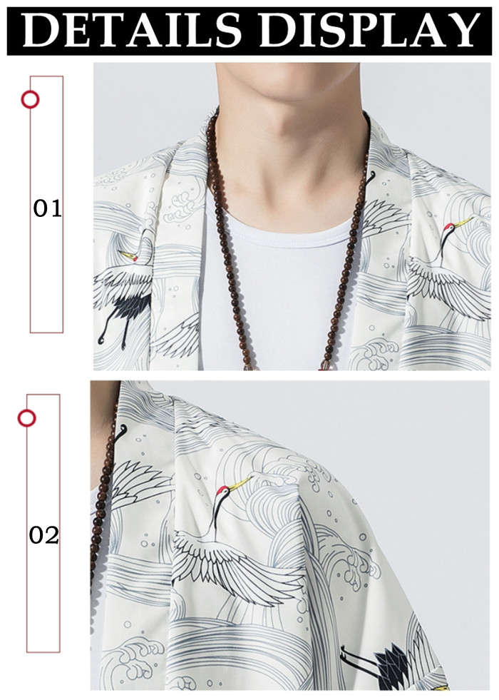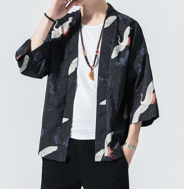 カーディガン 和風 和服 ゆったり 総柄 トップス アウター 春夏服 5styles 黒色 白色メンズファッション 和服 着物
