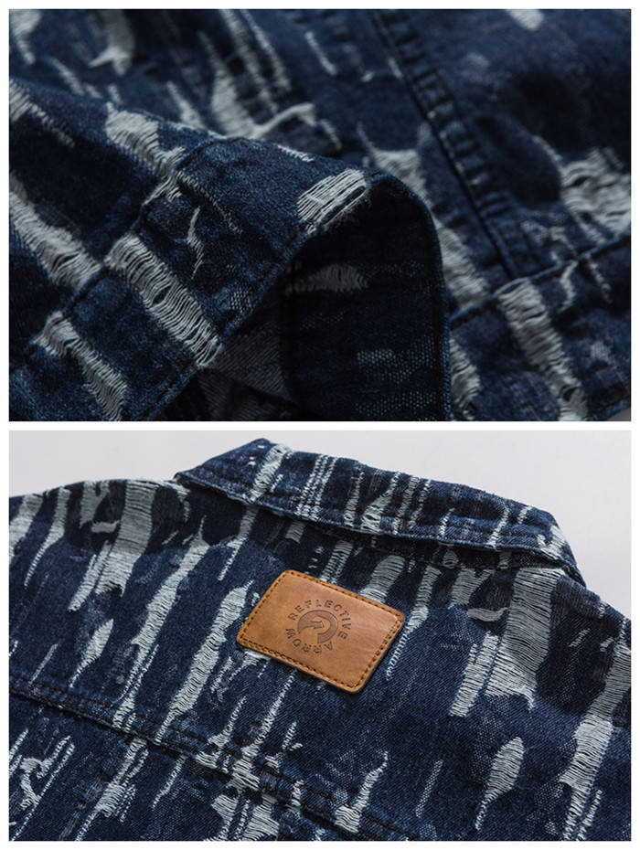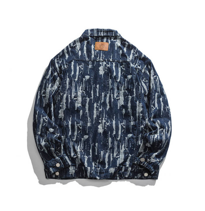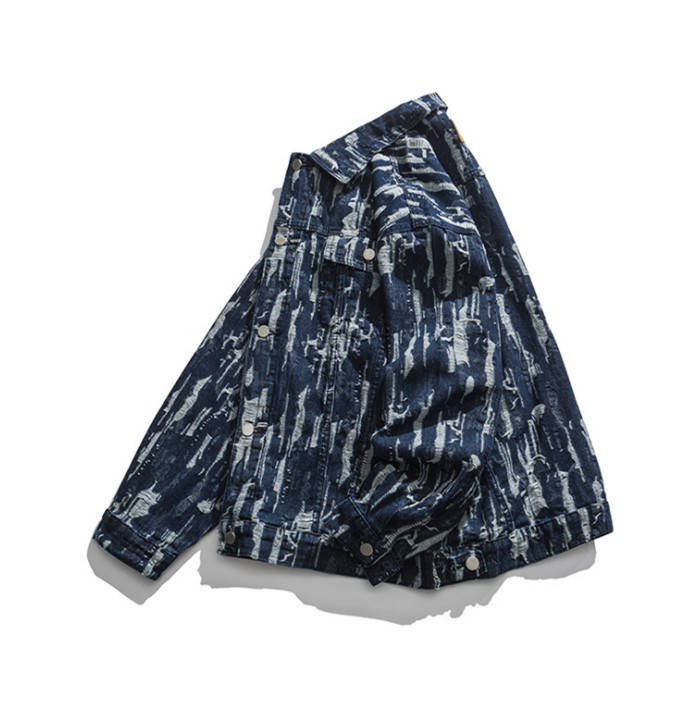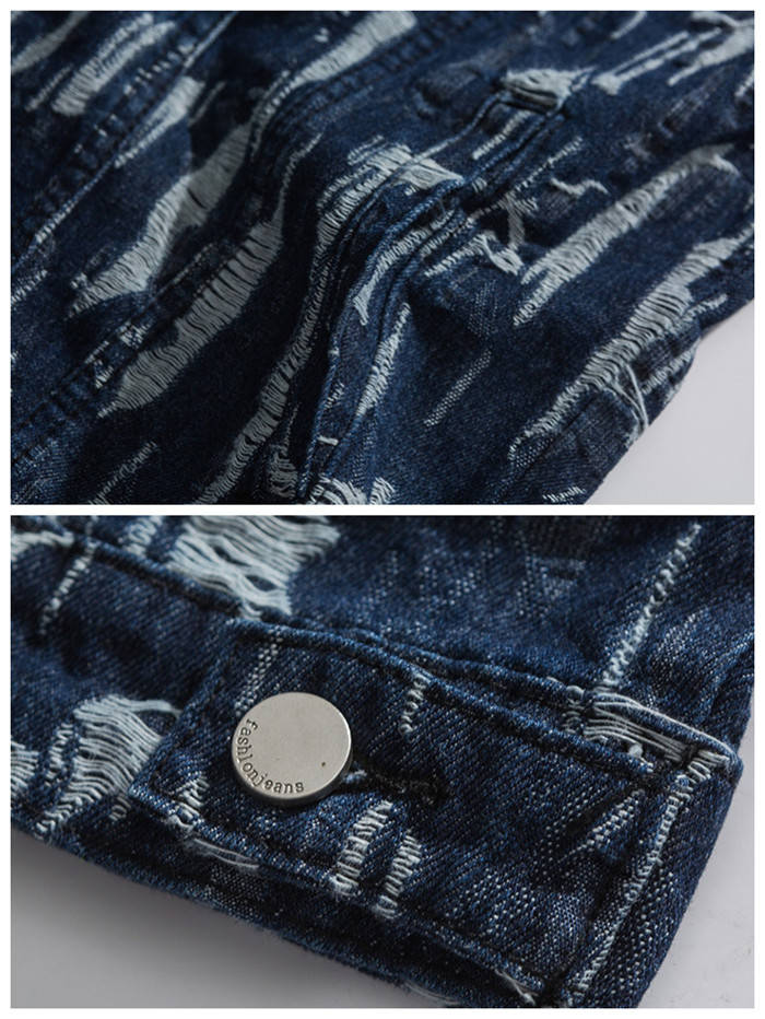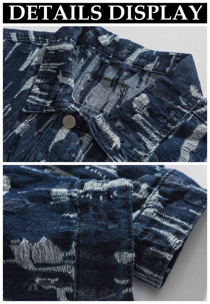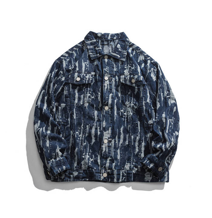 春秋服 ゆったり デニムジャケット ダメージ加工 ショートコート アウター ブルーメンズファッション コート ジャケット