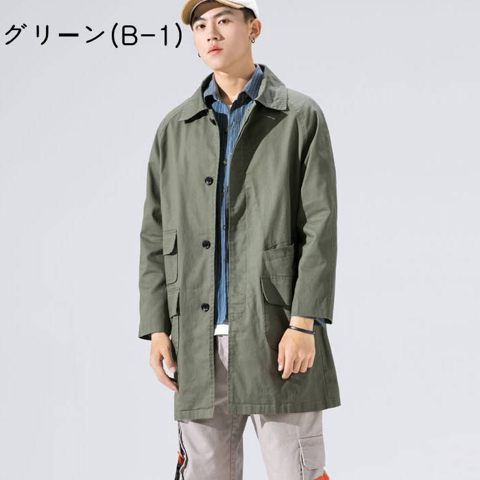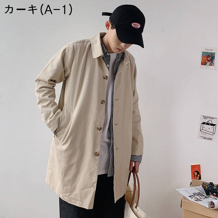 ステンカラーコート スリム 薄手 カジ
