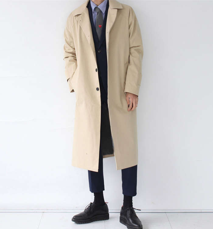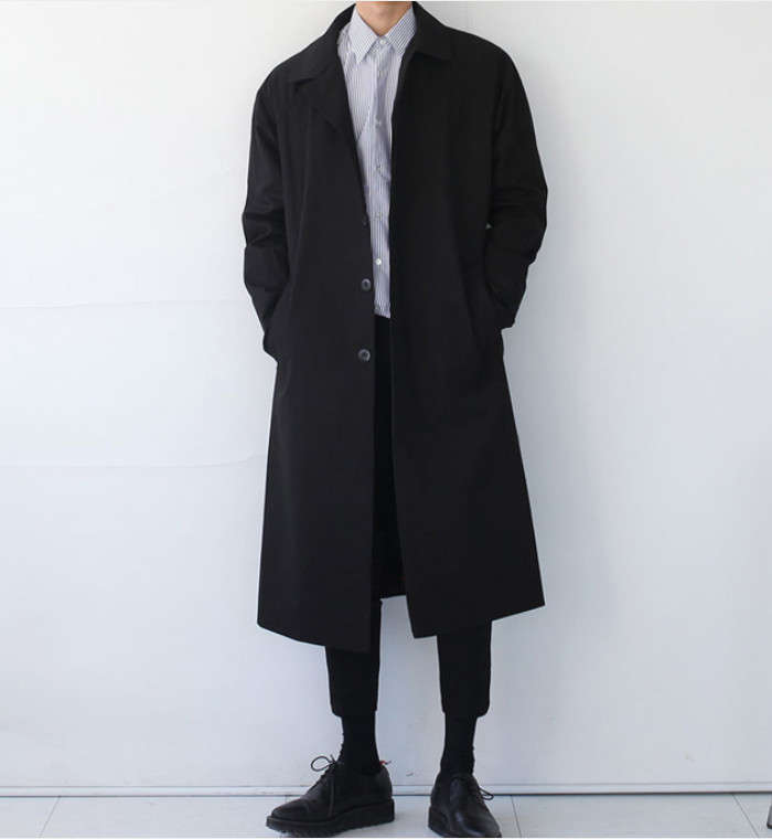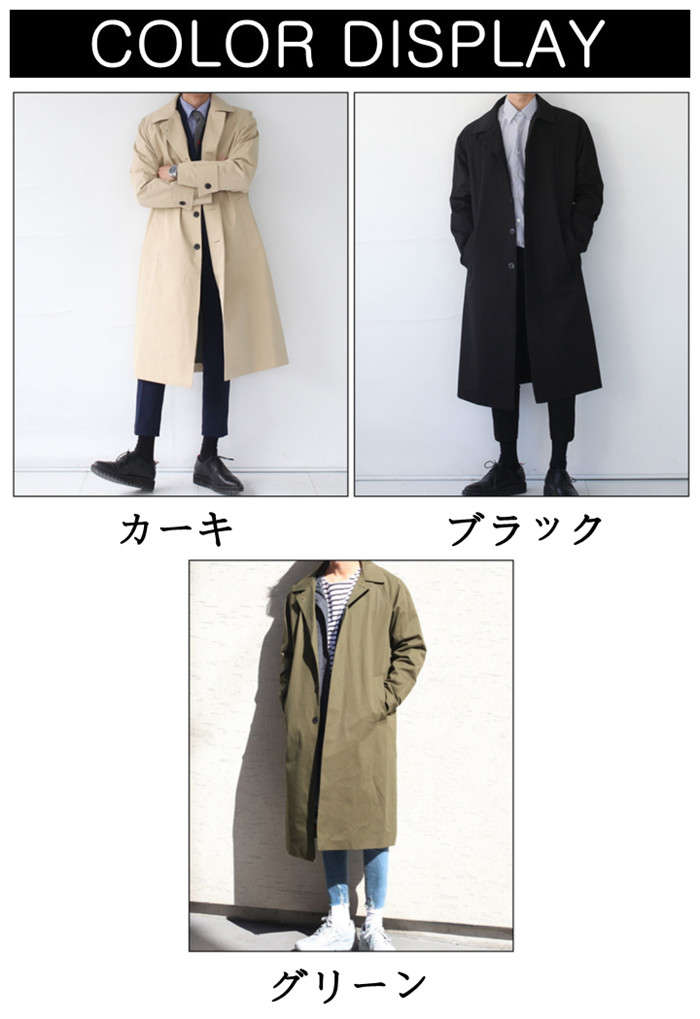 ステンカラーコート カジュアルコート メンズ 無地 ミドル丈コート 薄手 ゆったり柄 トレンチコート スプリングコート 春秋新作 アウター ファッション 黒色