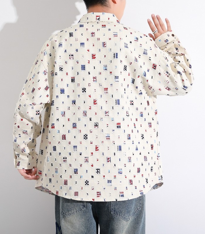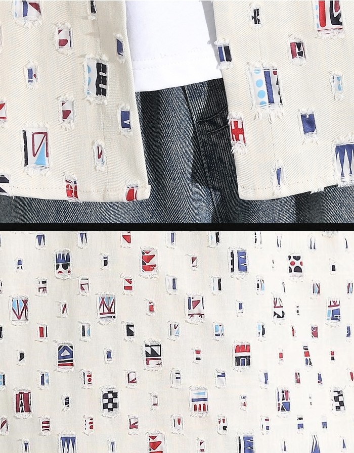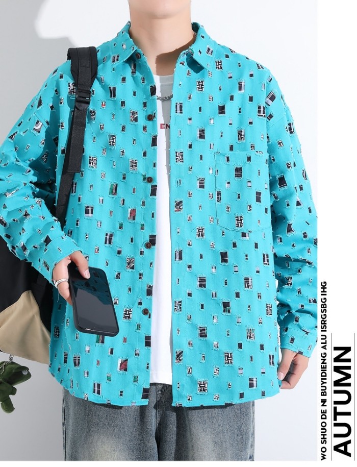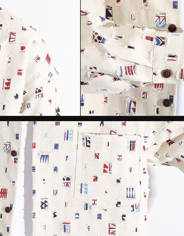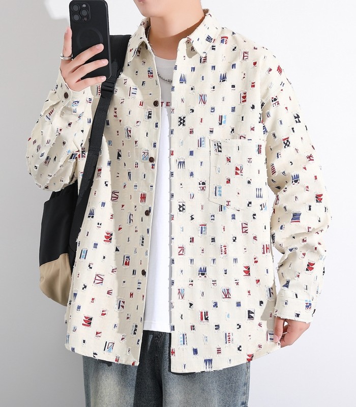 長袖シャツ ショート丈 シャツジャケット カジュアル ライトアウター ダメージ加工 トップス 黒色 白色 4colors
