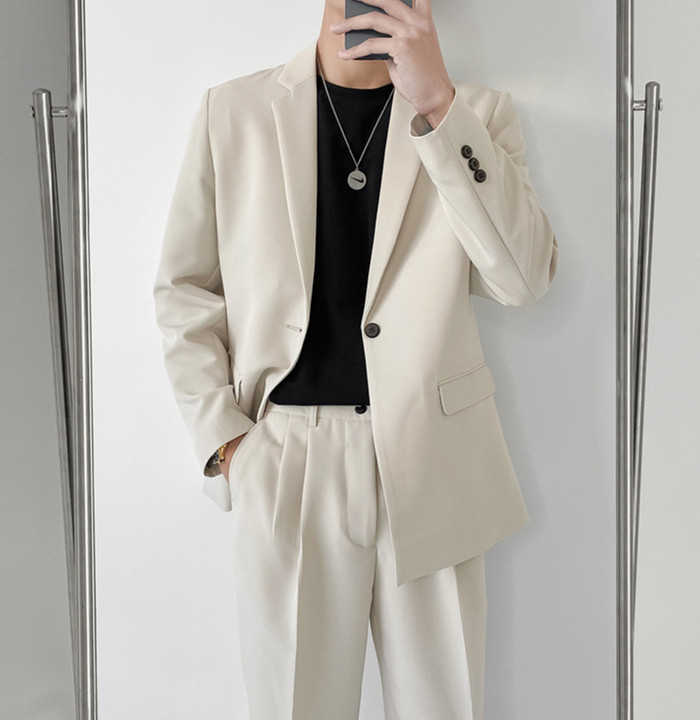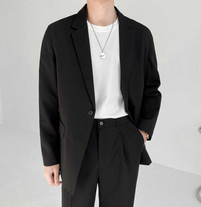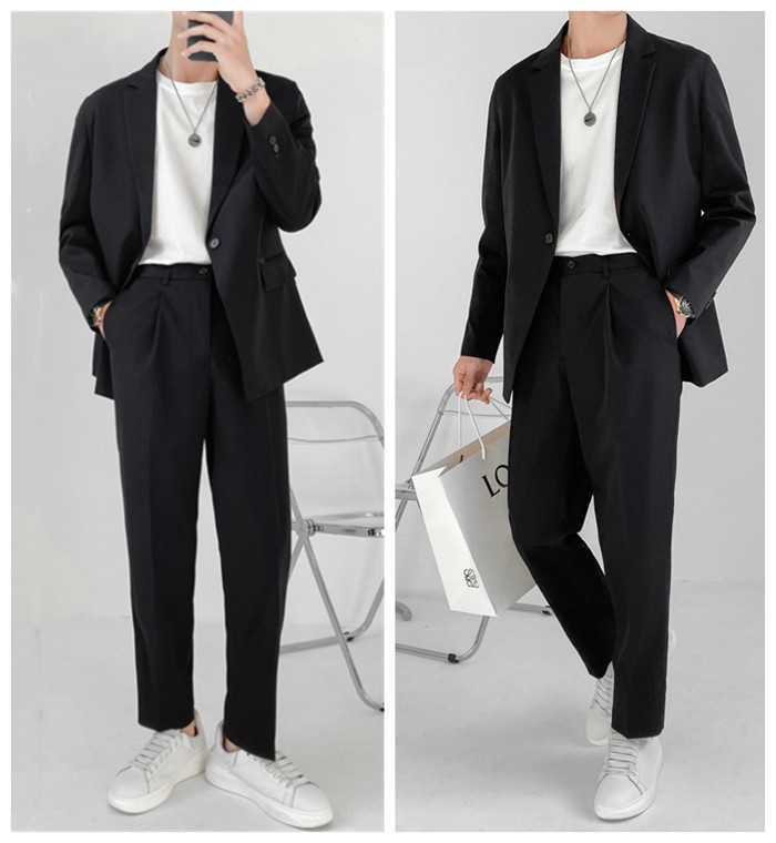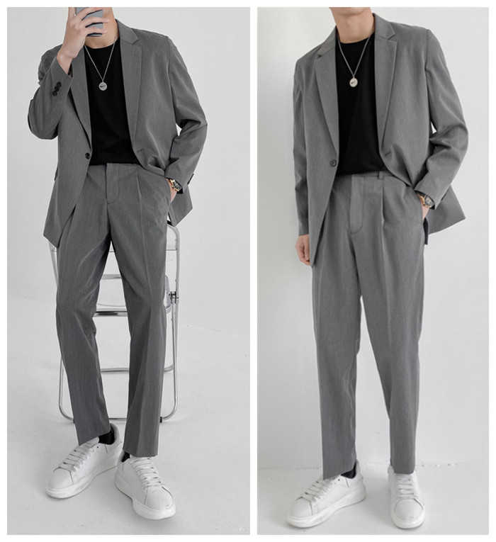 2点セットアップ上下 テーラードジャケット スラックス 夏品 男性用 無地 涼しい 3colors 灰色 黒色