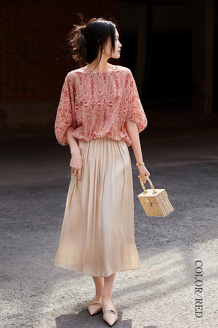 シフォンブラウス シアーブラウス ボリューム袖