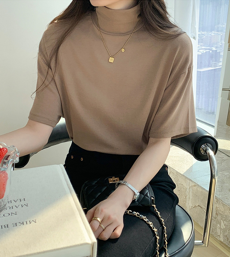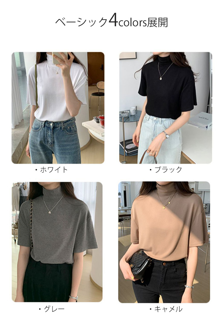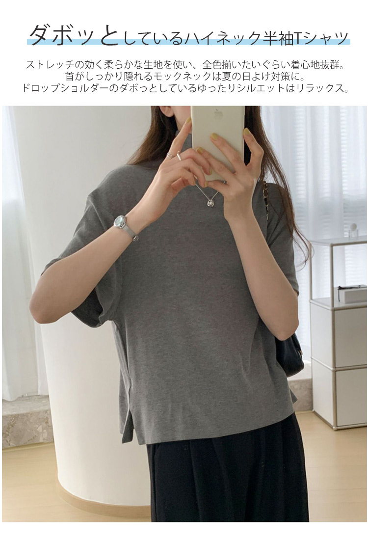 首もとをおしゃれに隠せるハイネック半袖