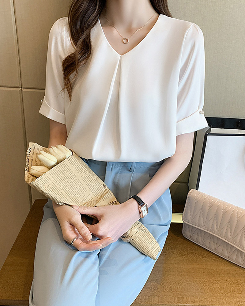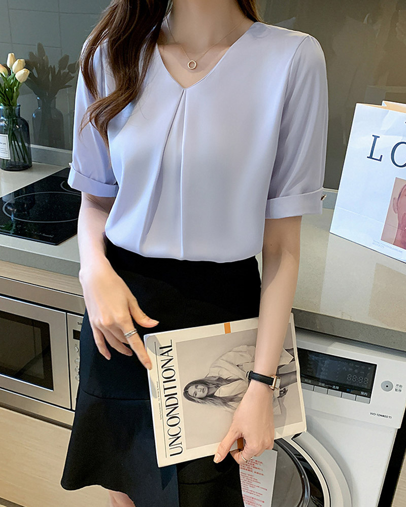 vネックシャツブラウス レディース ブ