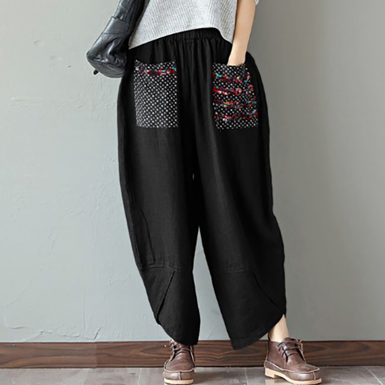 夏用薄手バルーンパンツ 柄ポケットカジュアル風 コットン 部屋着 リラックス ナチュラル 可愛い きれいめ 母の日 ママパンツ
