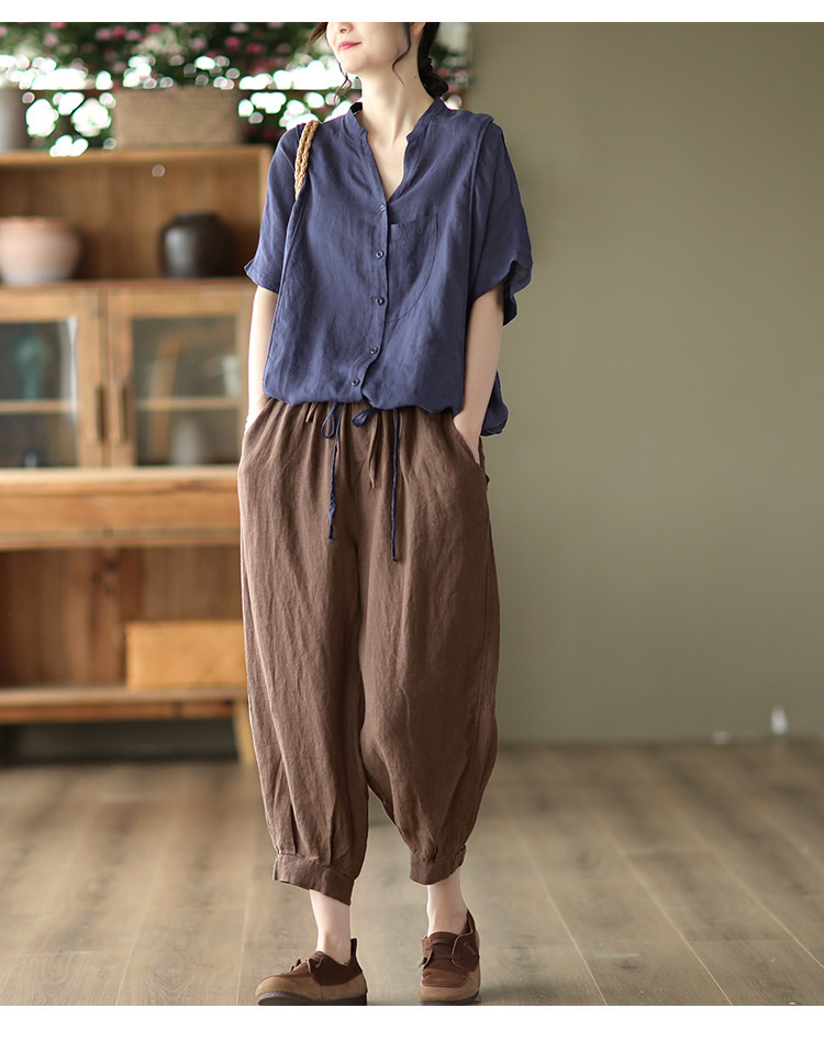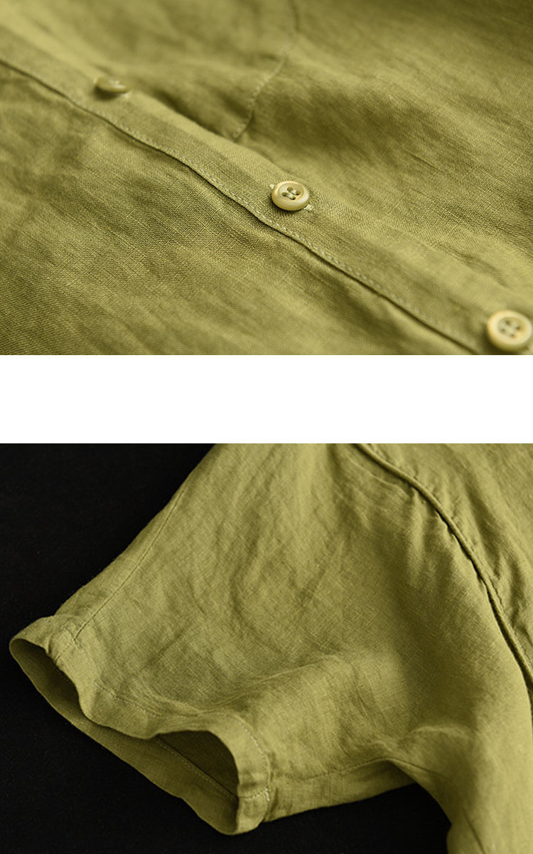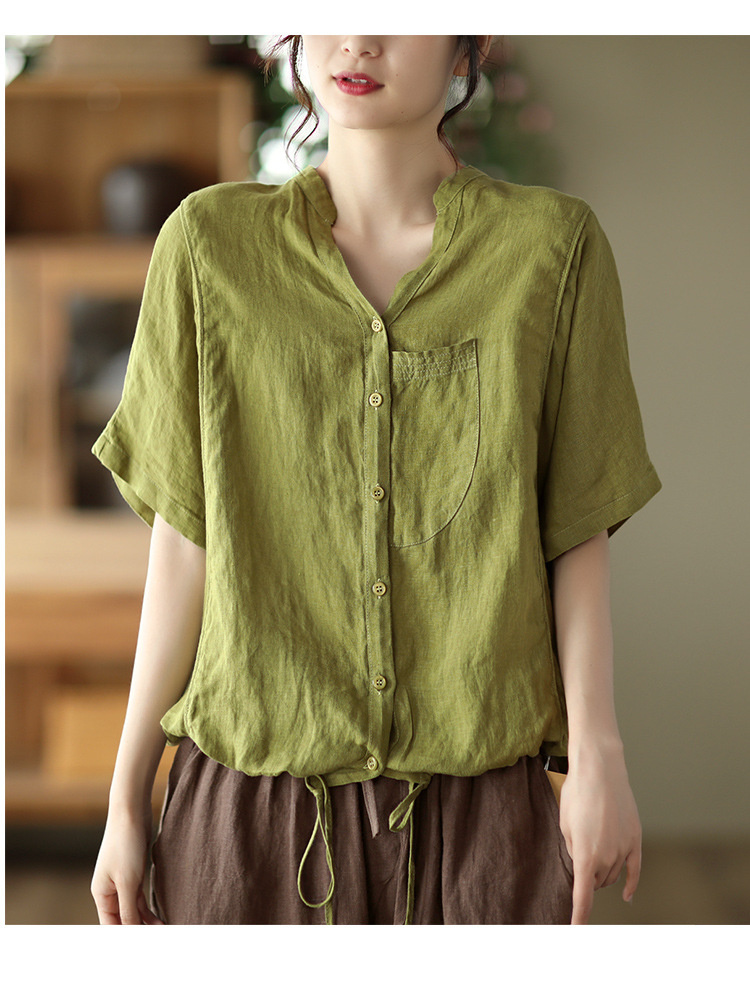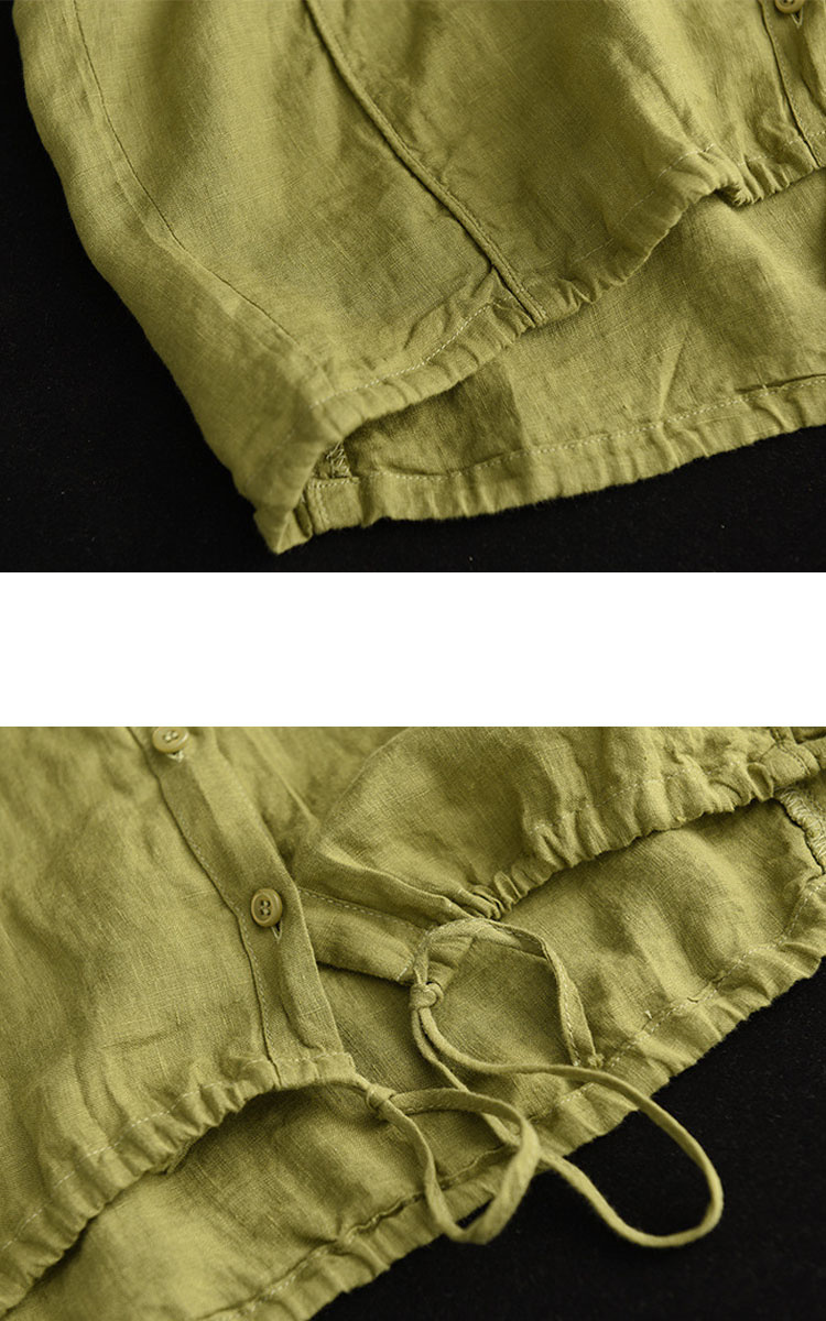 抜け感がある五分袖シャツ 綿麻 裾紐付